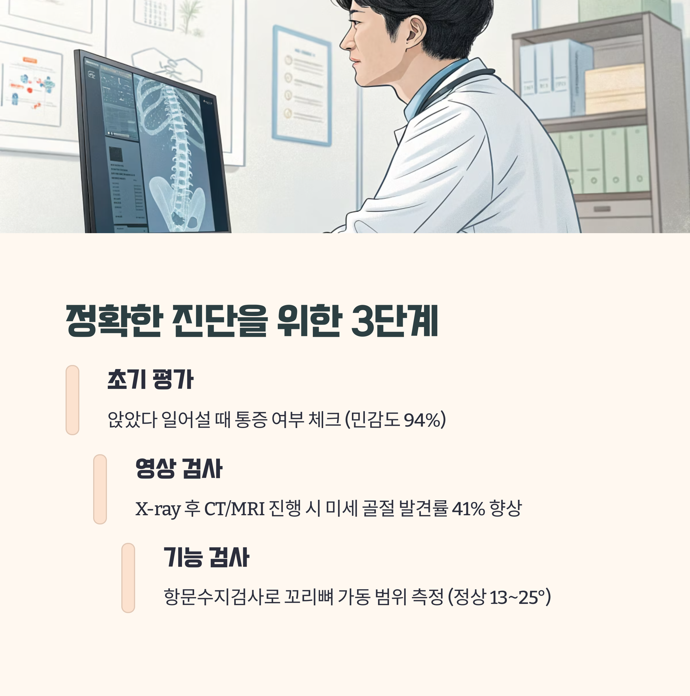 꼬리뼈 통증이 있을 때 그냥 찜질하고 기다리는 건 절대 금물! 3단계 평가 프로토콜을 따라야 정확한 진단과 치료가 가능해요.