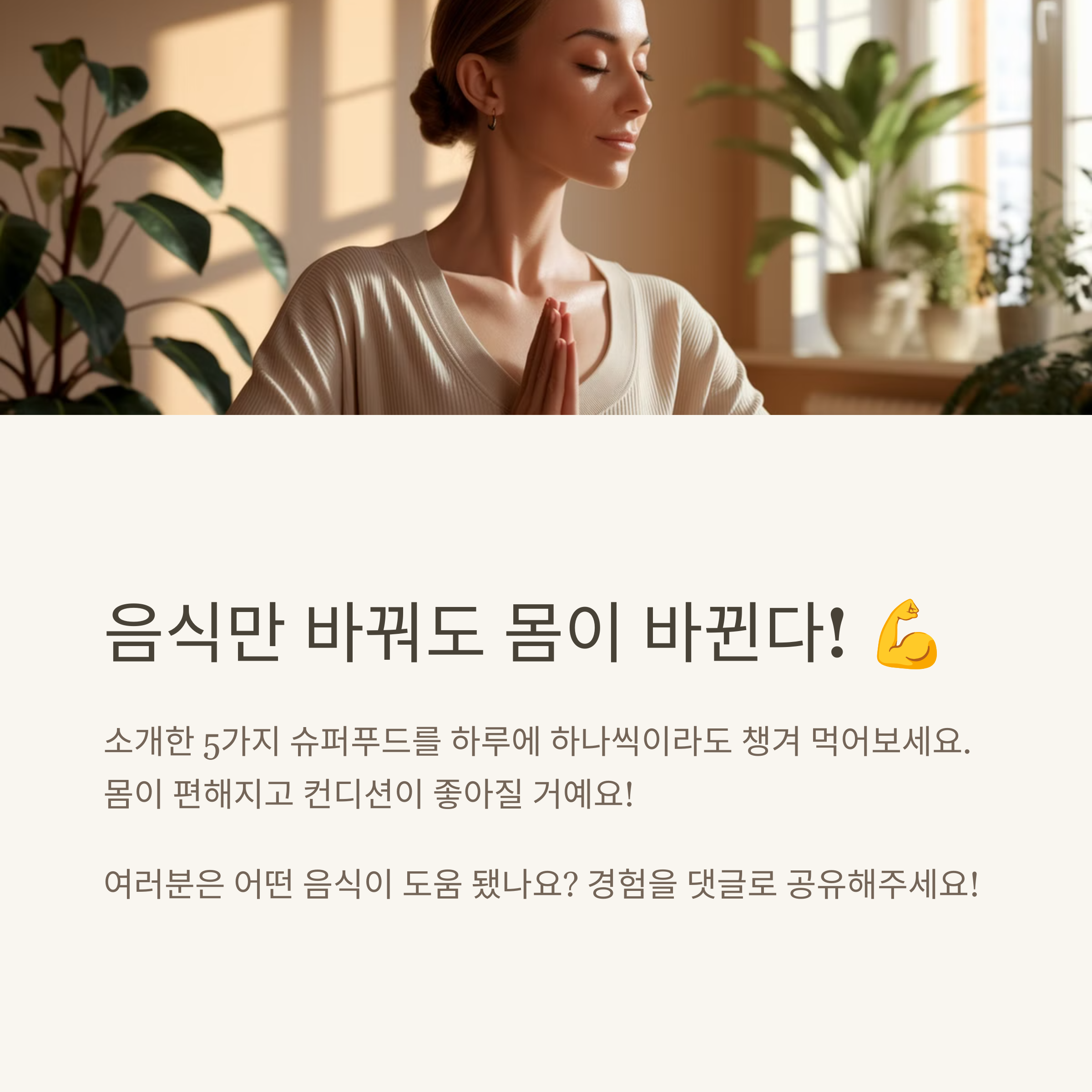 몸이 편해지고, 피로도 줄고, 컨디션이 확 좋아지는 걸 느낄 수 있을 거예요. 💪