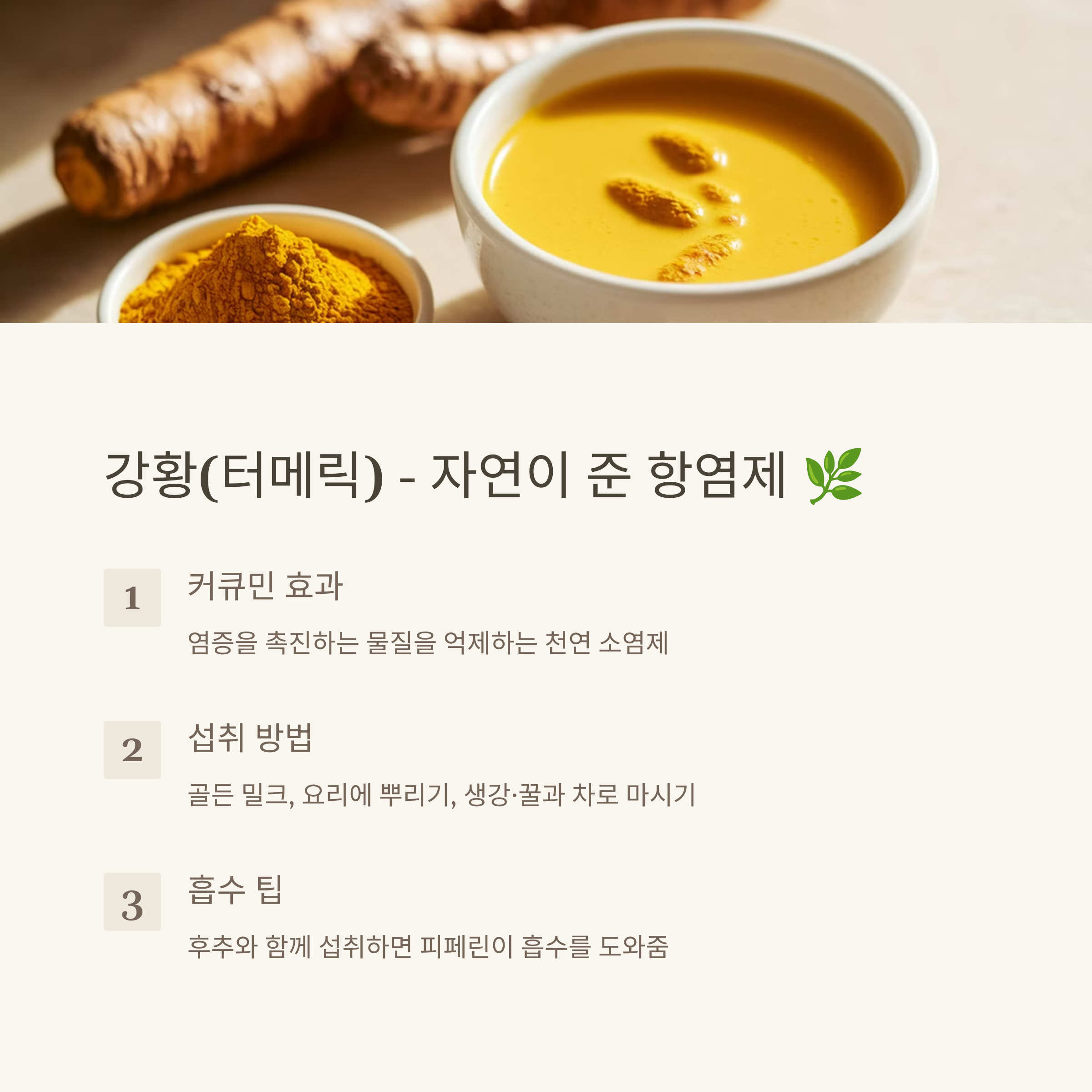 1. 강황(터메릭) – 자연이 준 항염제 🌿