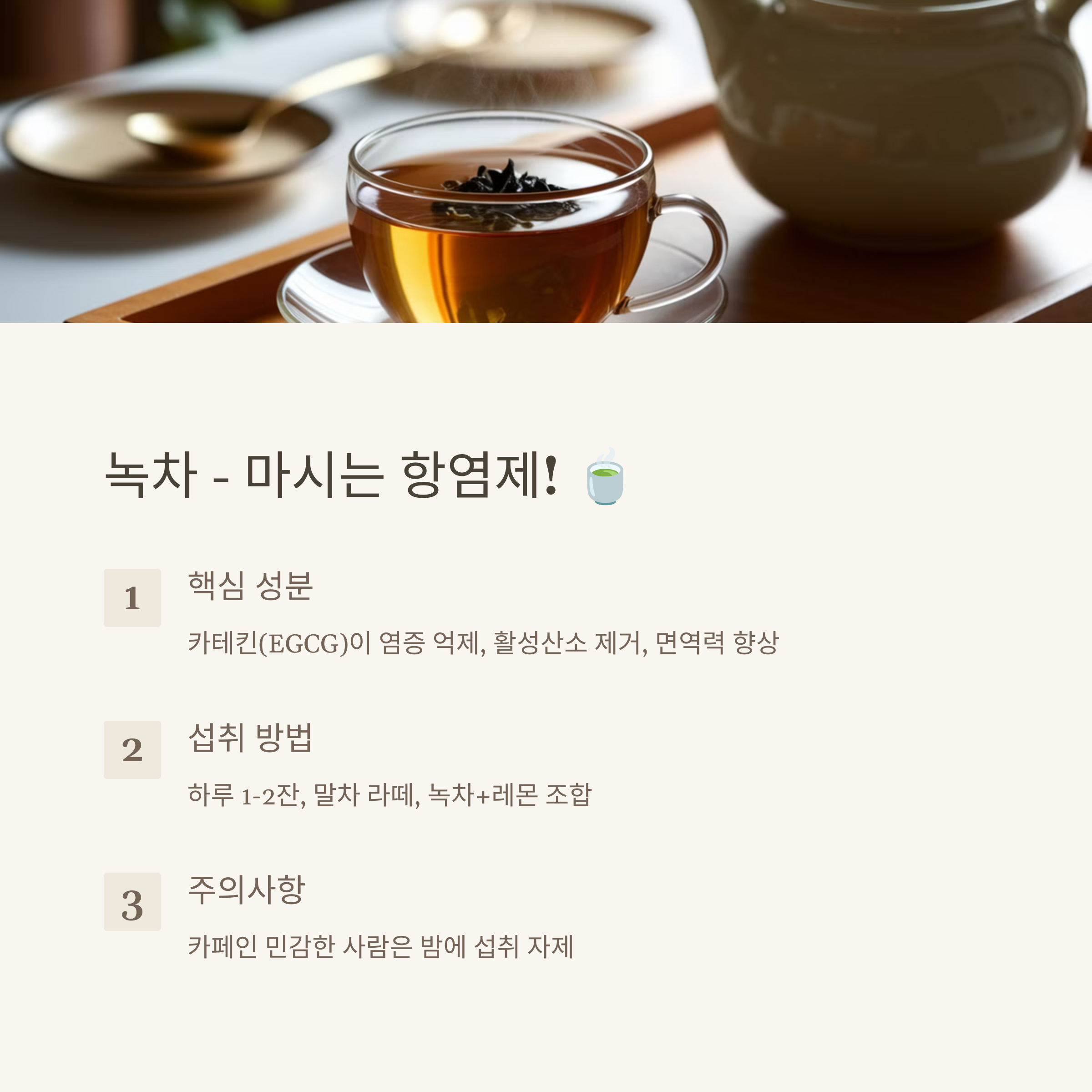 - 녹차 + 레몬 조합으로 항산화 효과 UP!