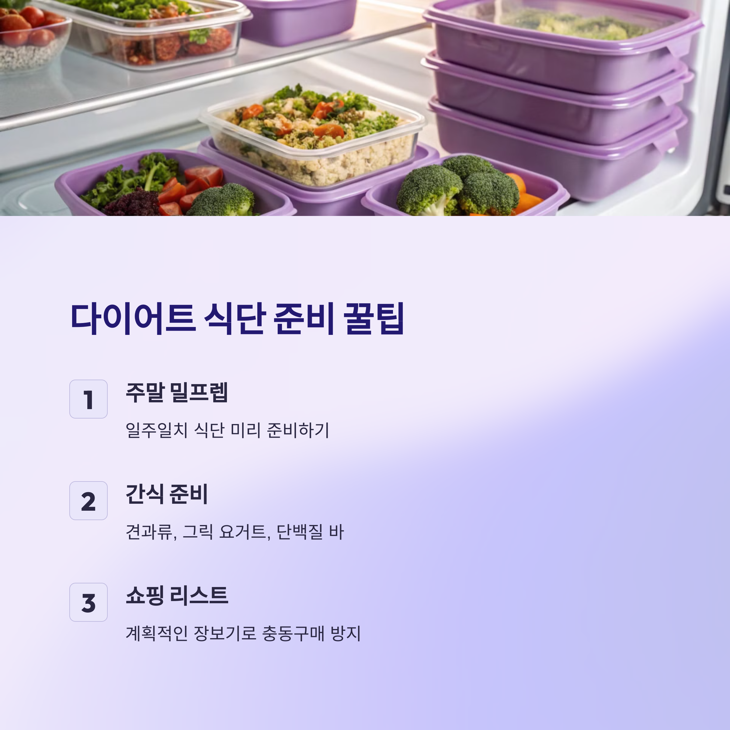 바쁜 일상 속에서 다이어트 식단을 지키려면 미리 준비하는 습관이 필요해요. 아래의 꿀팁을 참고하면 보다 쉽게 식단을 유지할 수 있습니다.