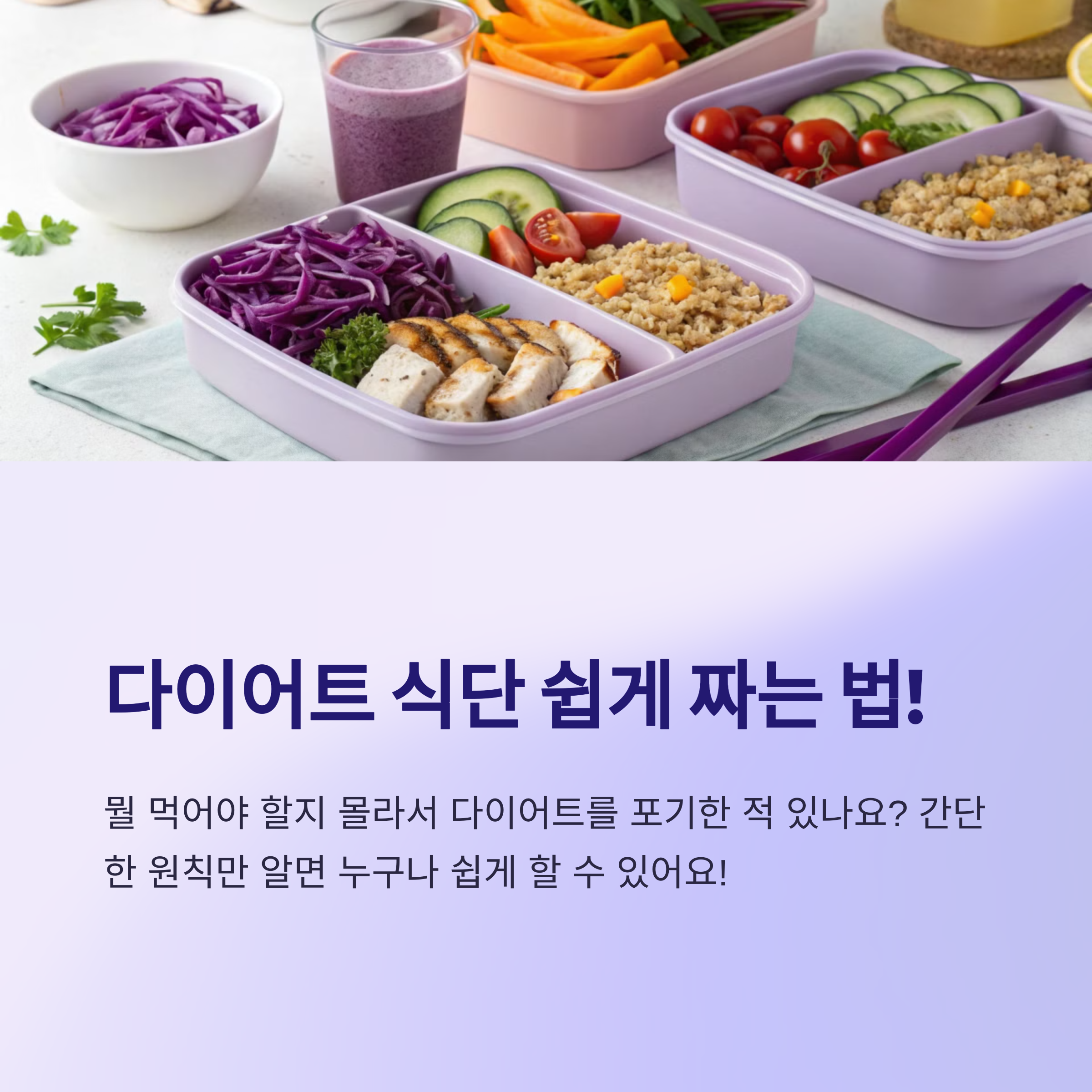 "뭘 먹어야 할지 몰라서 다이어트를 포기한 적 있나요?" 어렵게만 느껴지는 다이어트 식단, 사실은 아주 간단한 원칙만 알면 누구나 쉽게 짤 수 있습니다!