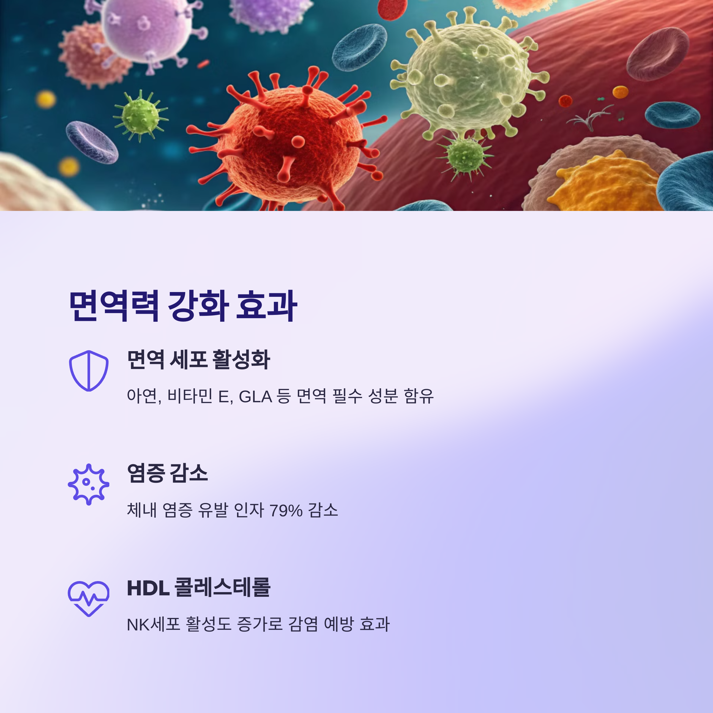 특히 HDL 콜레스테롤 수치를 높여 NK세포 활성도를 증가시키는 데 기여하며,