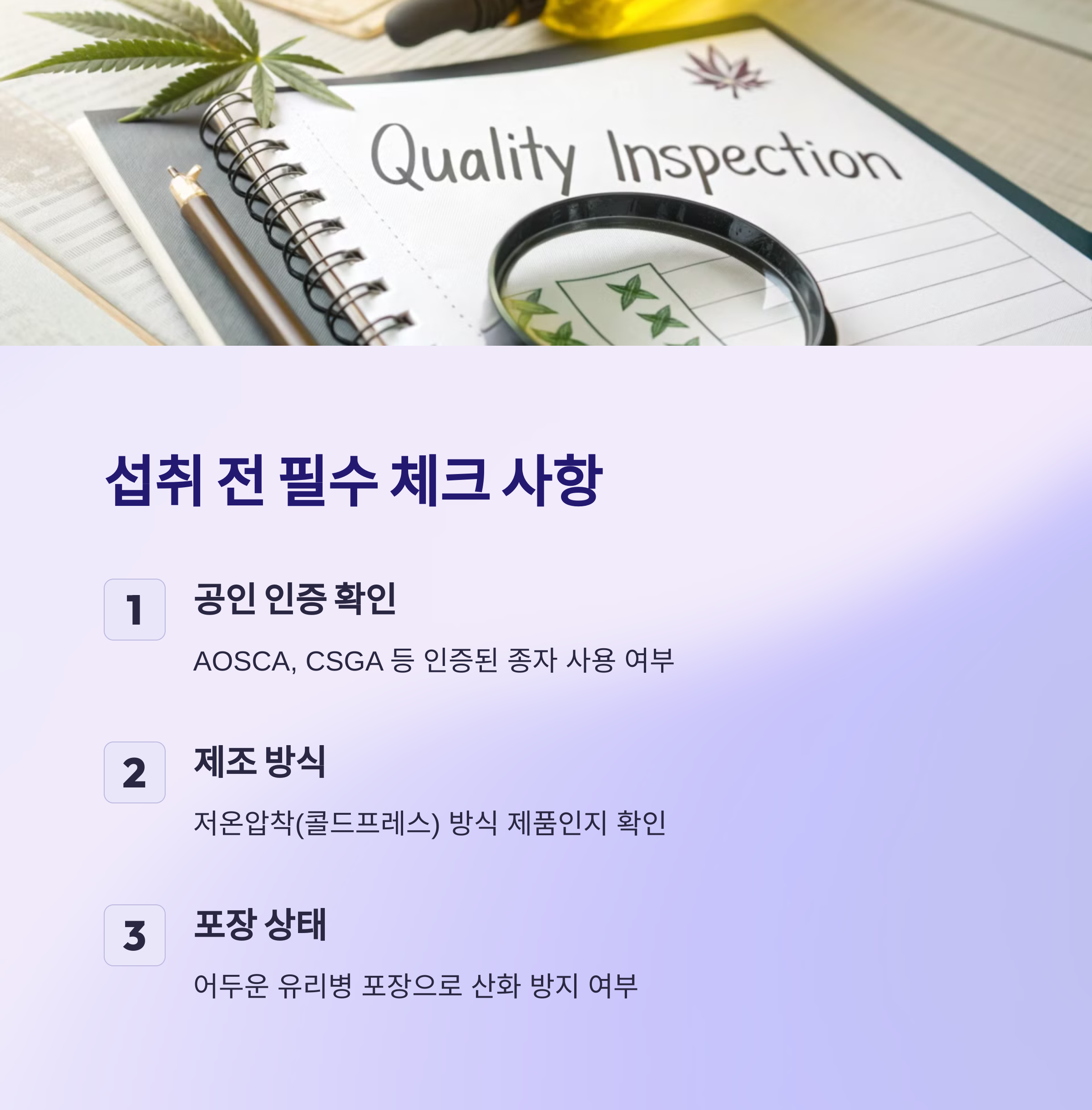 - 저온압착 방식 제품인지 확인 (콜드프레스)