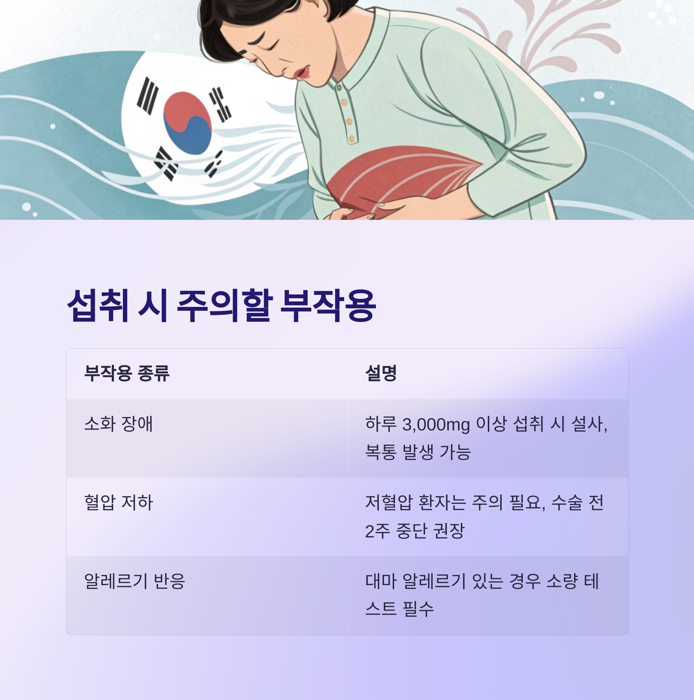 건강에 좋은 만큼 부작용도 있을 수 있으니 꼭 체크해야 할 사항들을 하나씩 정리해드릴게요.