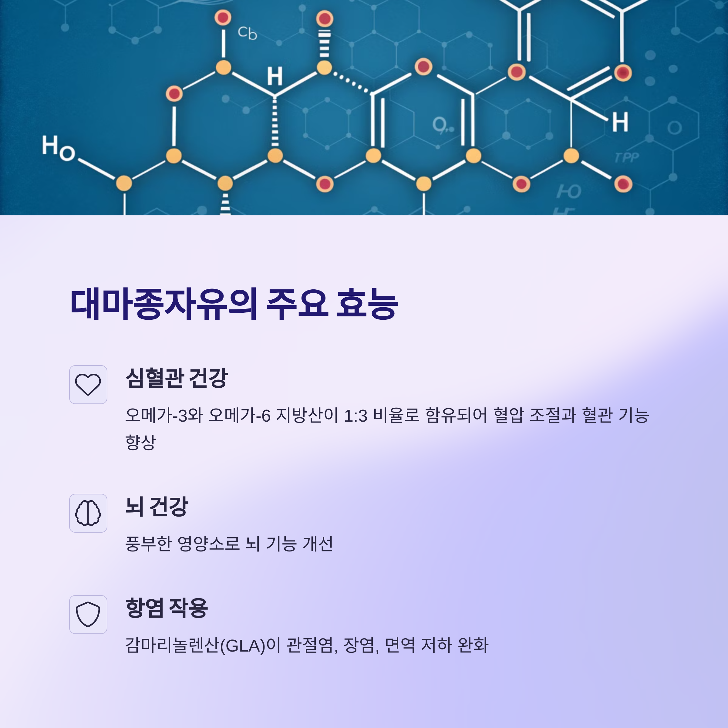 감마리놀렌산(GLA)은 강력한 항염 작용을 통해 관절염, 장염, 면역 저하 등을 완화하는 데 도움을 줍니다.