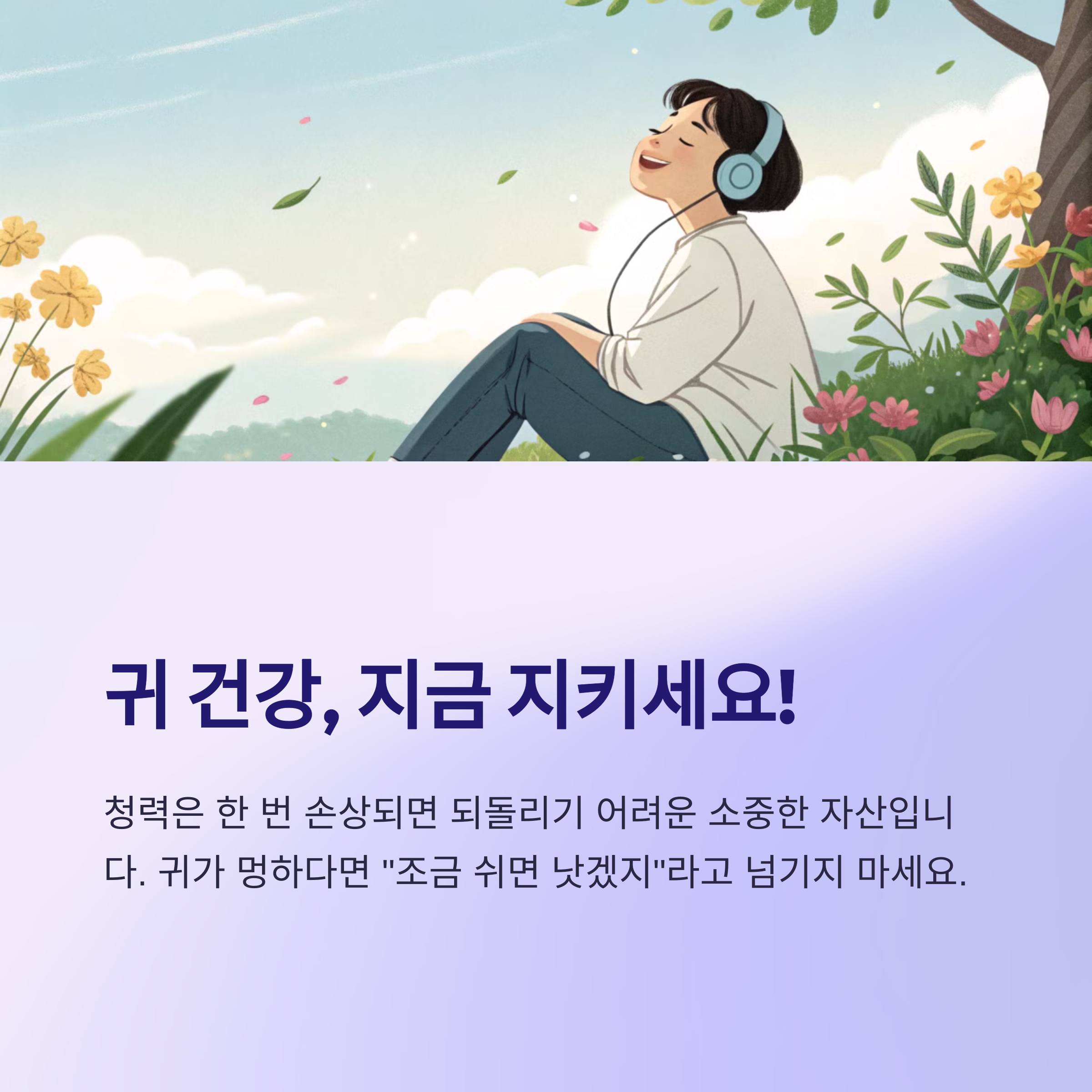 바쁜 일상 속에서 "조금 쉬면 낫겠지"라며 넘기기 쉽지만, 청력은 한 번 손상되면 되돌리기 어려운 소중한 자산입니다.