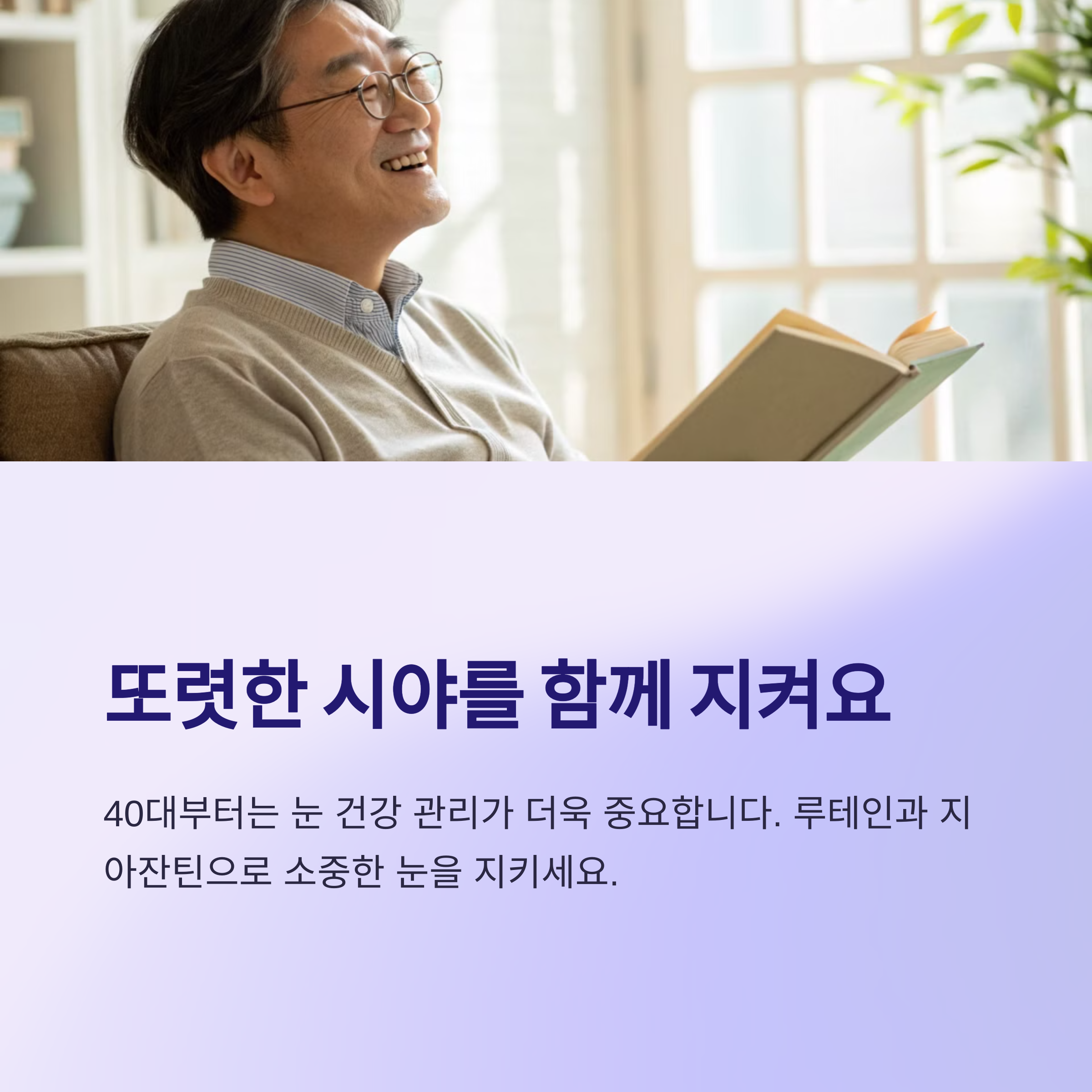 40대 이후부터는 눈 노화가 가속화되기 때문에 이 시점부터 꾸준히 챙겨주는 것이 좋습니다.