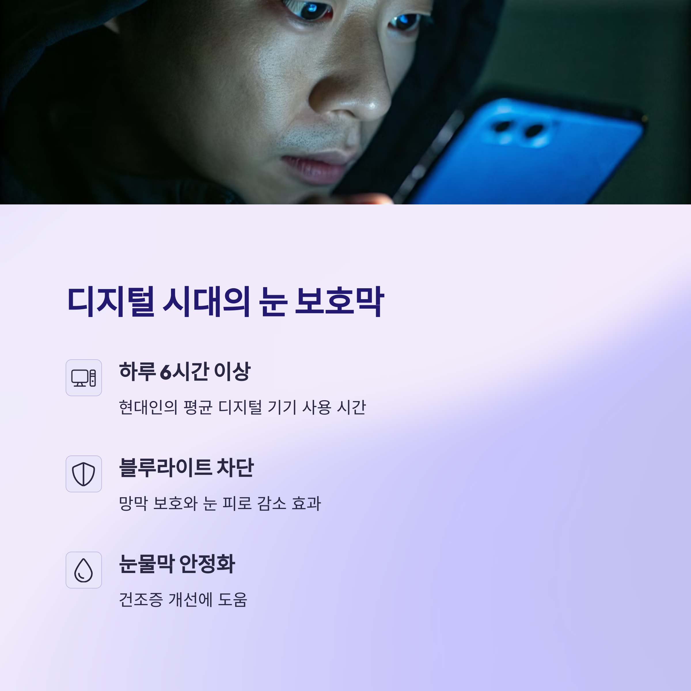 | 눈 피로 완화 | 청색광을 차단하고 눈물막 안정성 개선으로 피로도를 줄입니다 |
