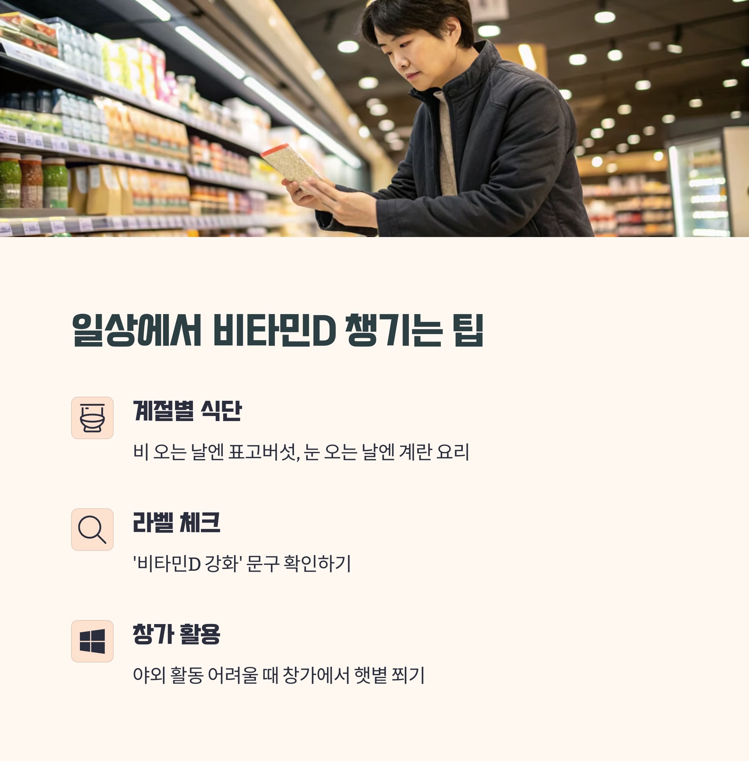 - 식품 라벨에서 ‘비타민D 강화’ 문구 꼭 체크하기
