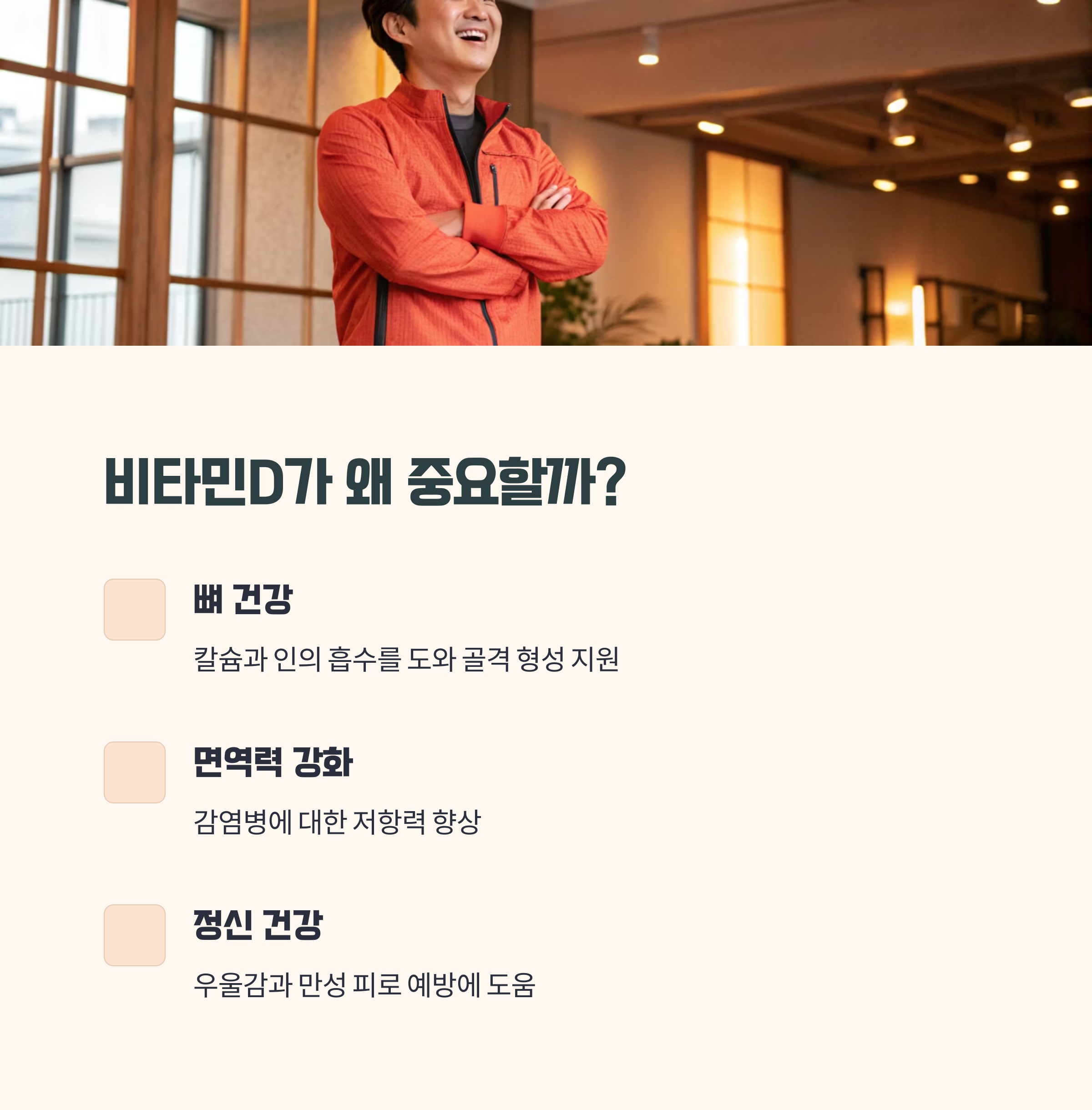 햇볕이 부족한 계절, 또는 실내에서 보내는 시간이 많은 요즘 같은 시대에 비타민D를 챙기는 건 선택이 아니라 필수입니다.