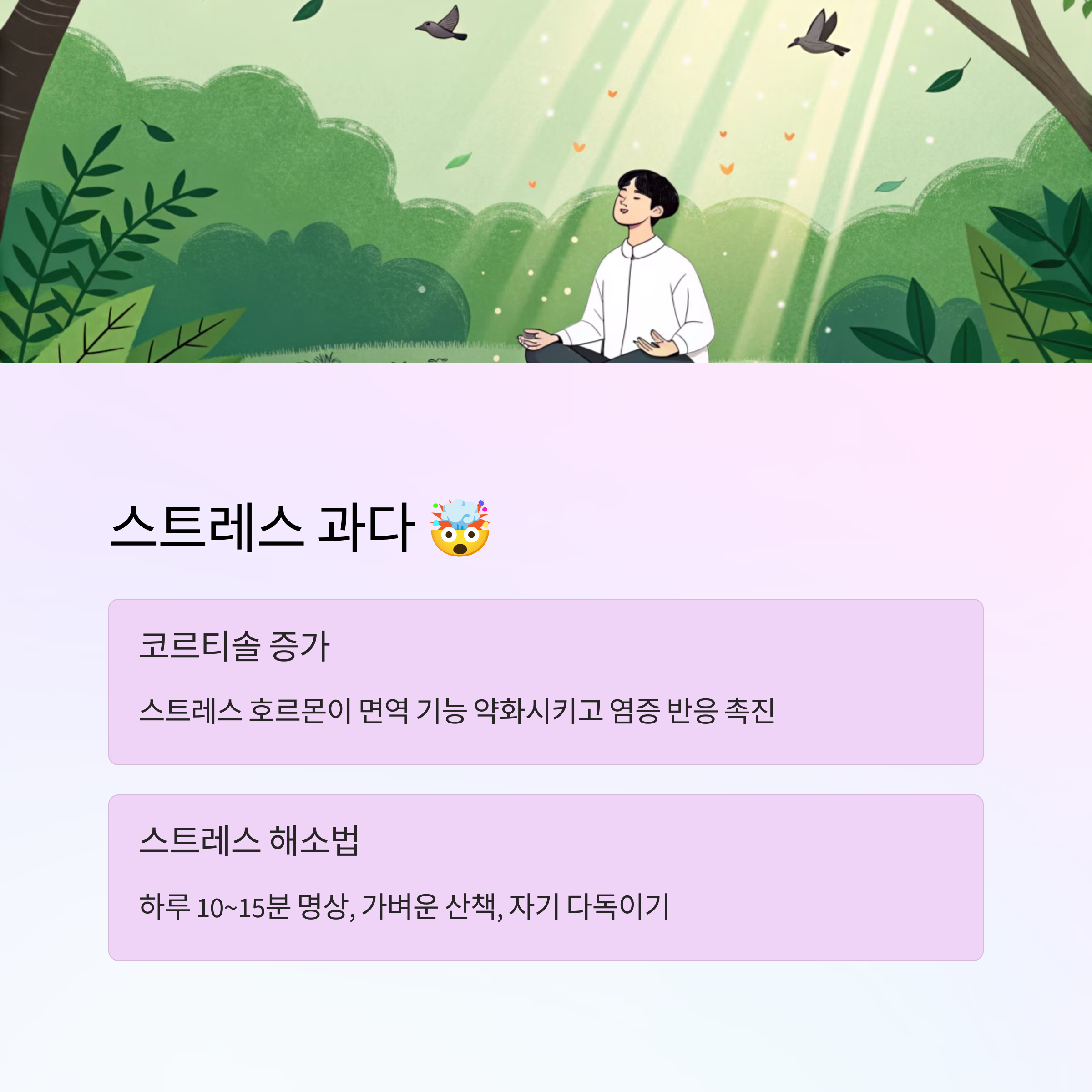 - 하루 10~15분 명상 or 심호흡