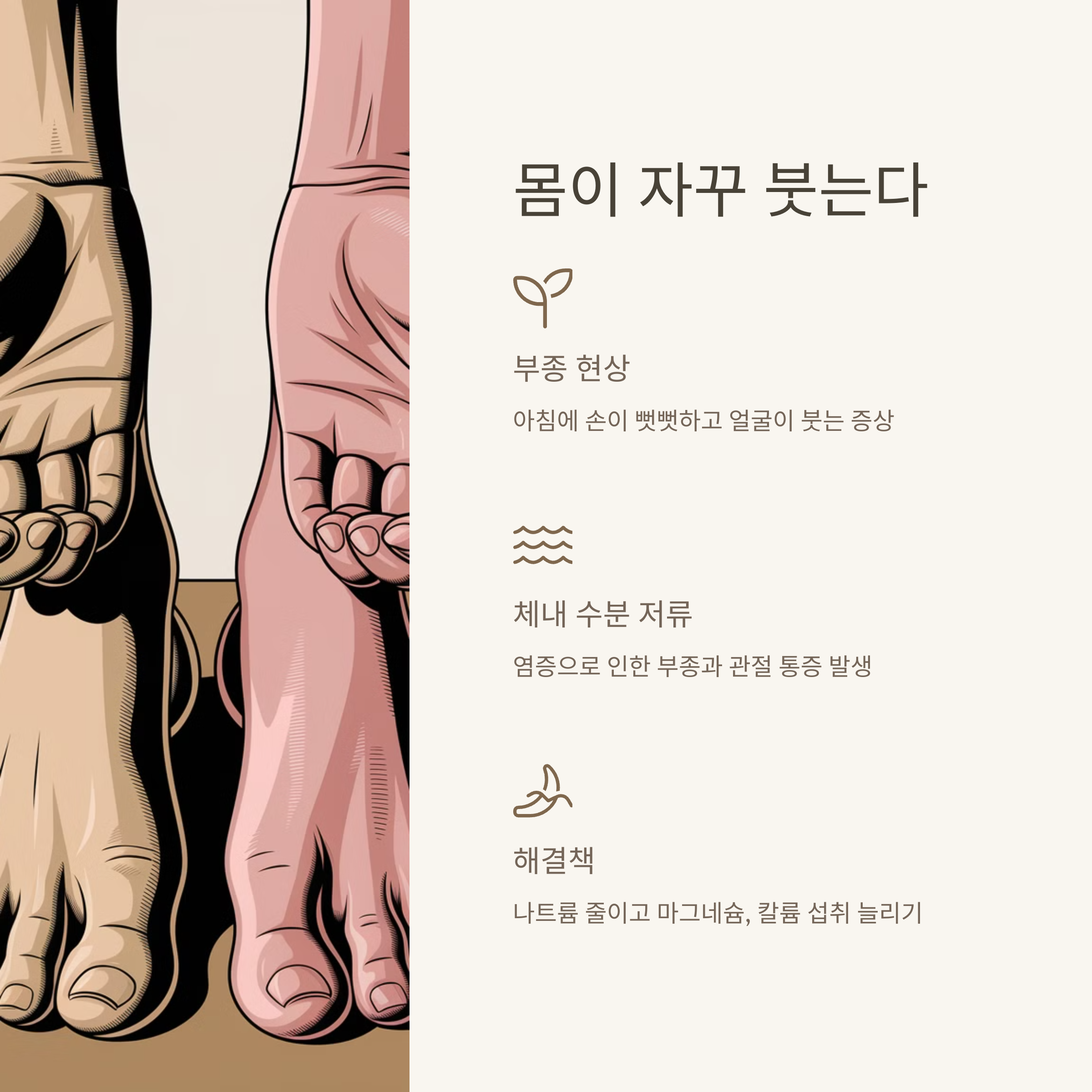 2. 몸이 자꾸 붓는다 🦵 – "손발이 퉁퉁, 얼굴까지 붓는다면?"