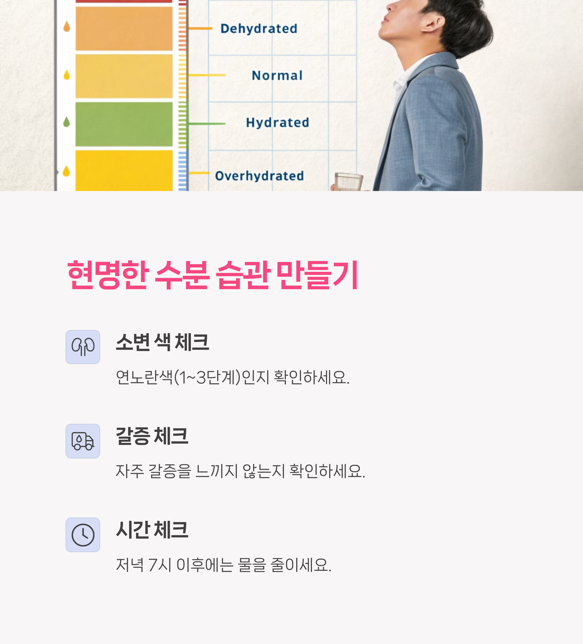 내 몸에 맞는 수분 섭취법을 찾는 것, 그것만으로도 이미 자기관리를 시작한 거예요.