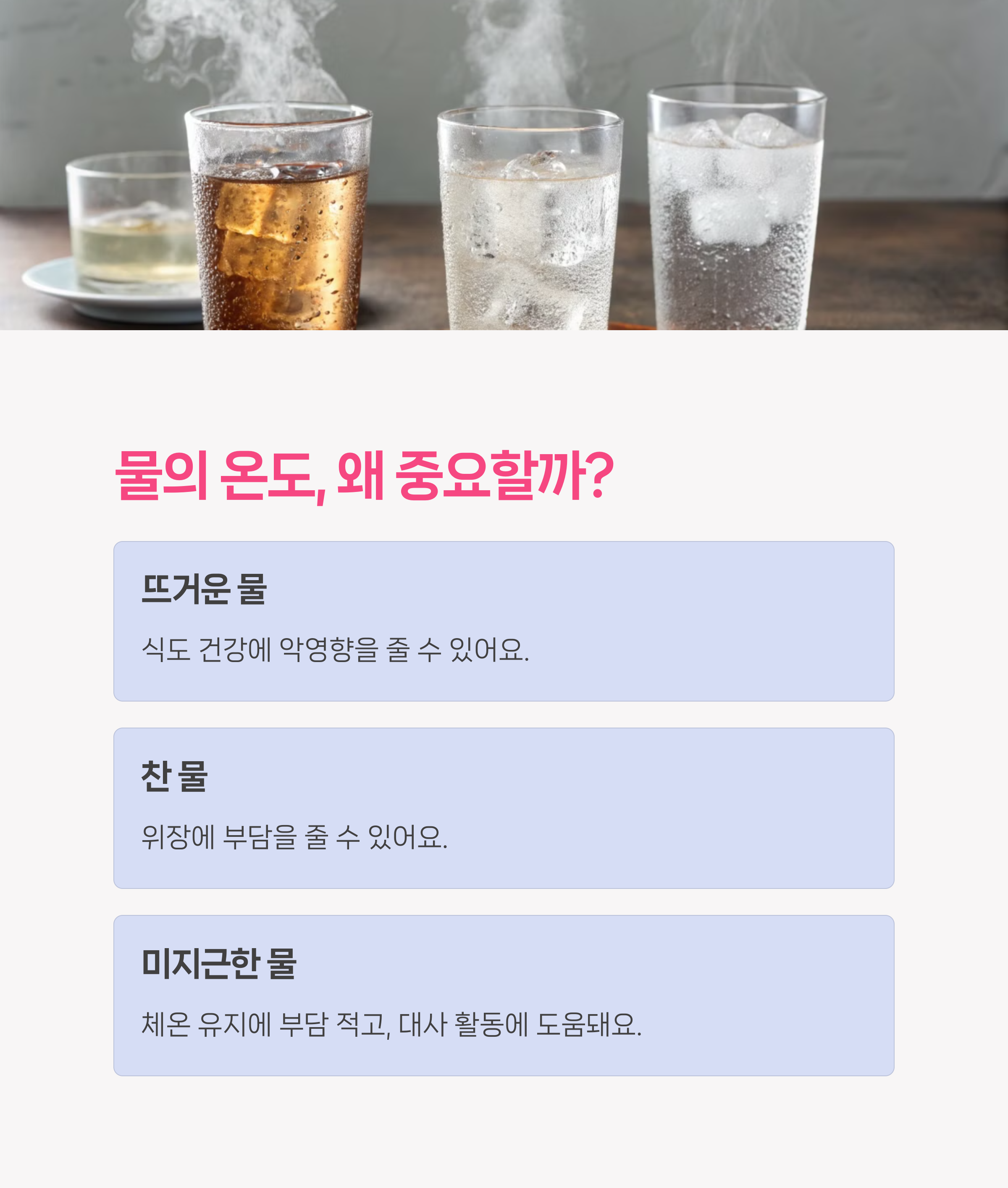 특히 뜨거운 물은 식도 건강에 악영향을 줄 수 있어요.
