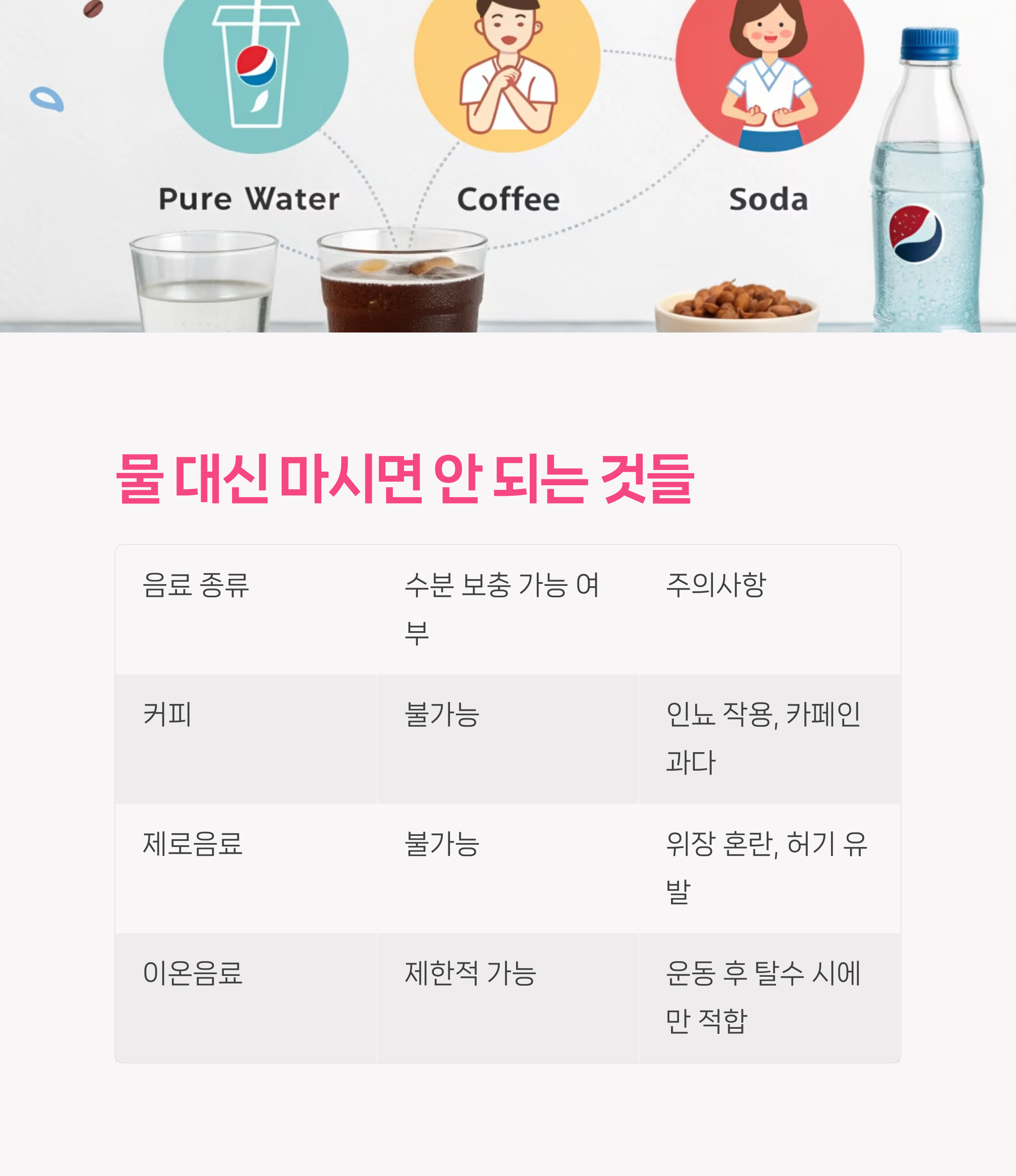 | 음료 종류 | 수분 보충 가능 여부 | 주의사항 |