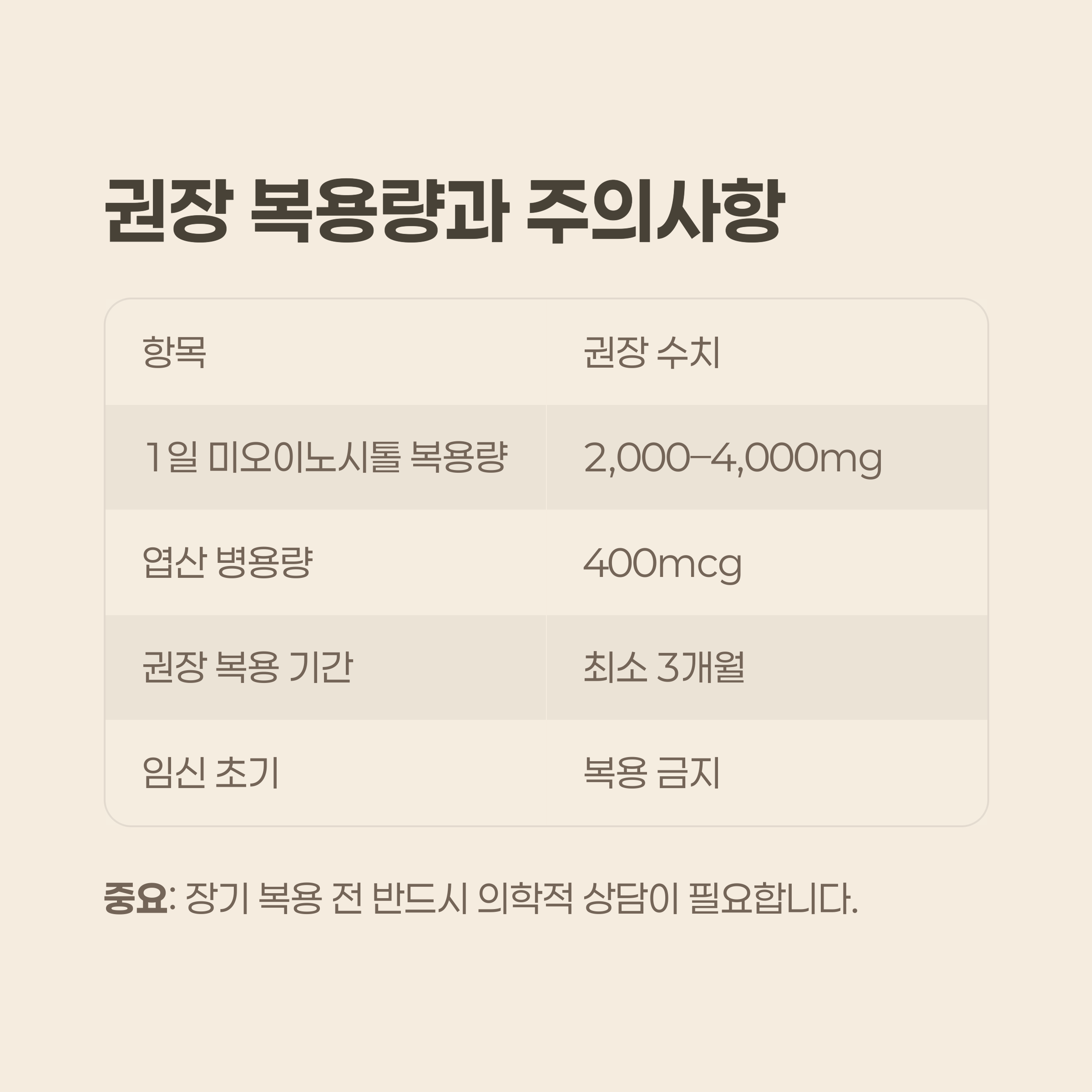 | 1일 미오이노시톨 복용량 | 2,000~4,000mg |
