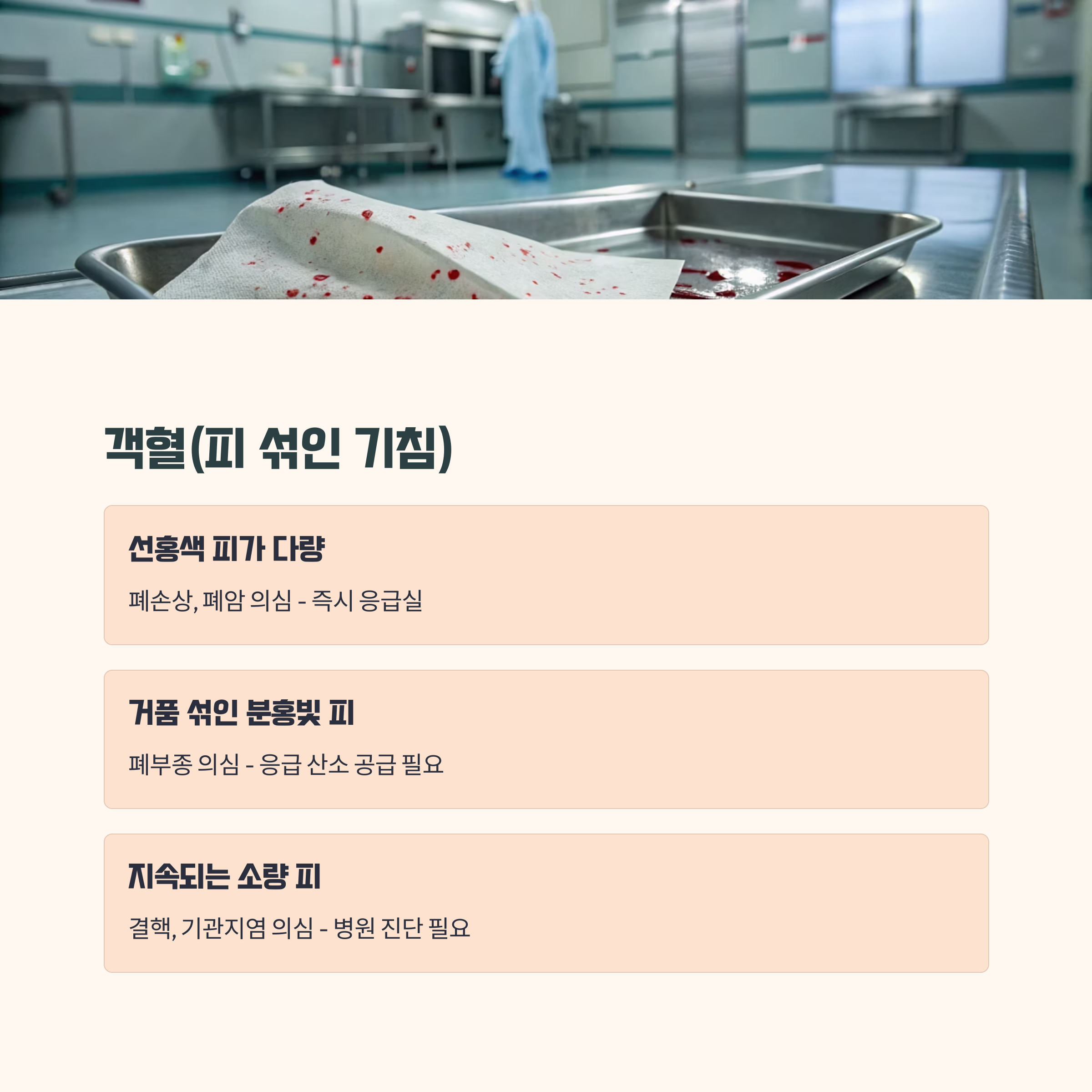 '기침 + 피' 조합은 폐렴, 폐결핵, 폐암 등 심각한 질환의 경고일 수 있어요.