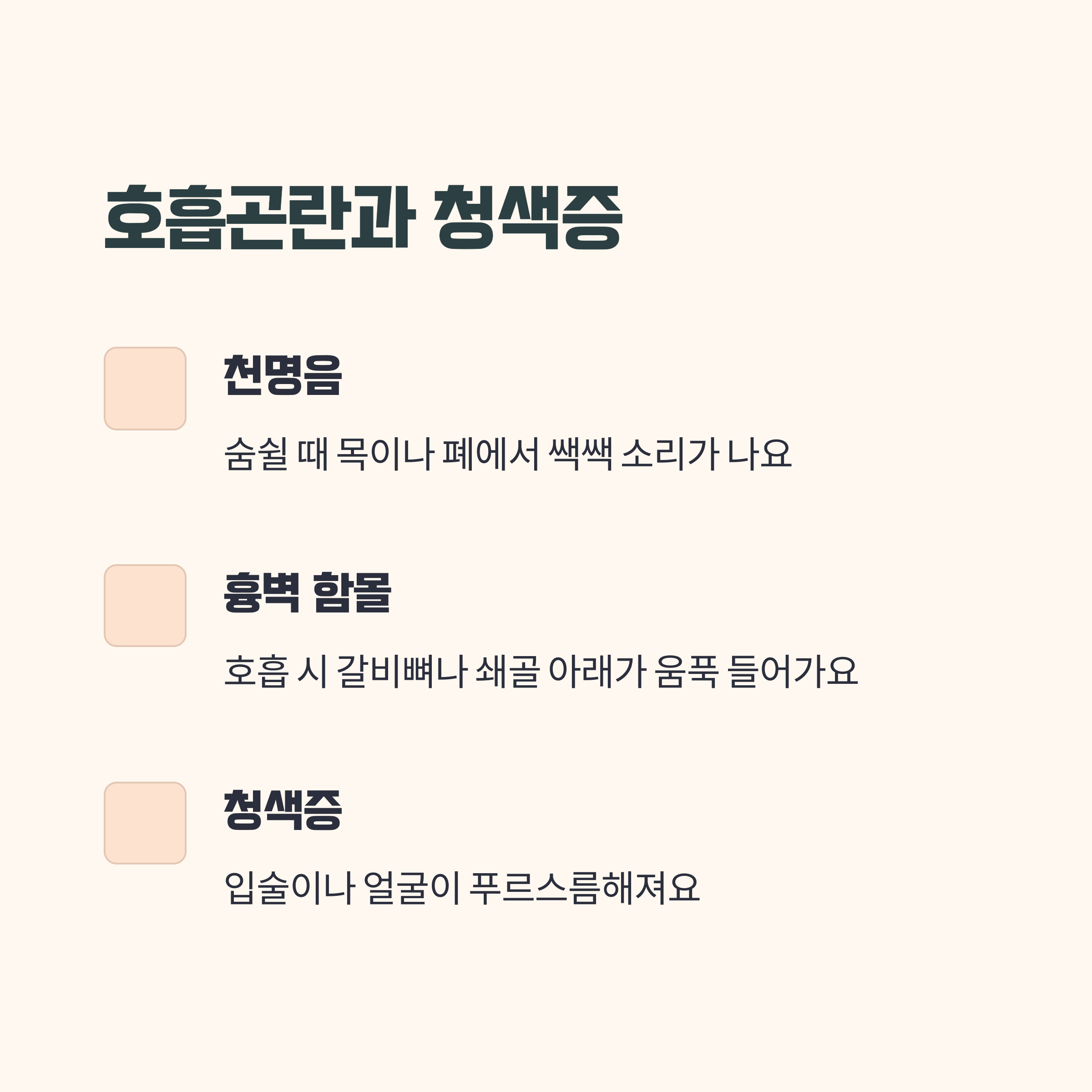특히 호흡곤란이나 청색증, 고열, 의식 변화 등 위험 신호가 있다면 망설이지 말고 병원을 방문하세요.