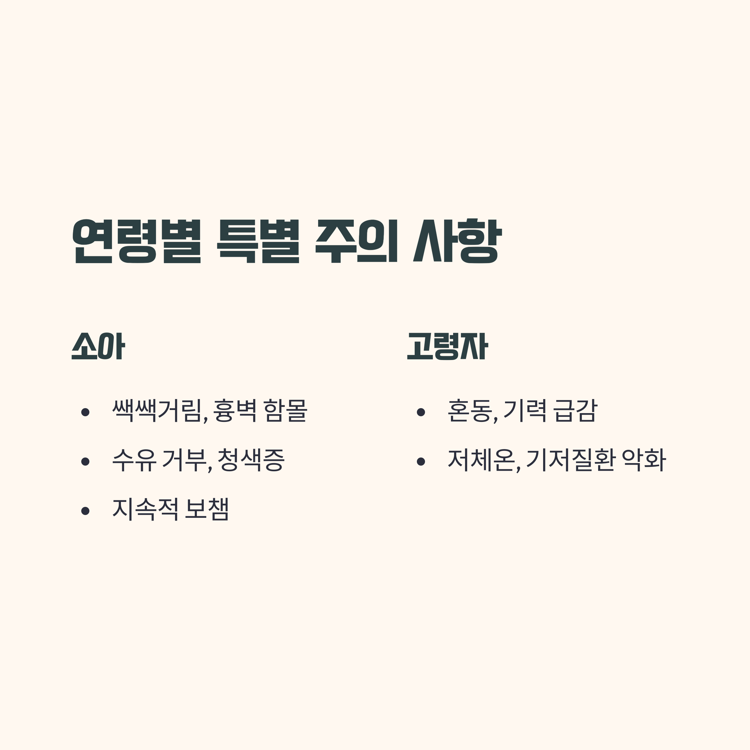 같은 증상이라도 소아와 고령자에겐 훨씬 더 위험할 수 있습니다. 아래 증상은 반드시 응급실에 내원해야 하는 신호예요.