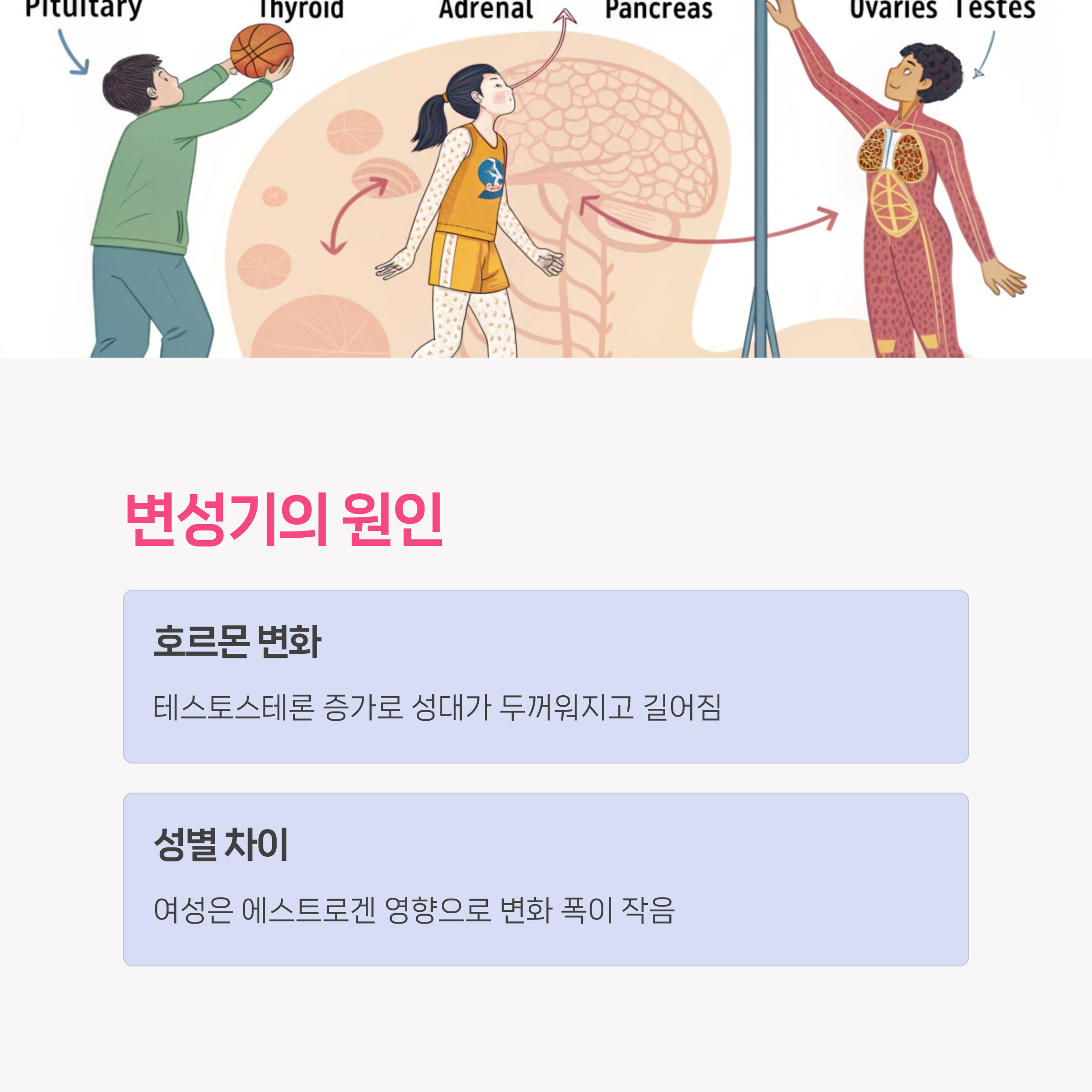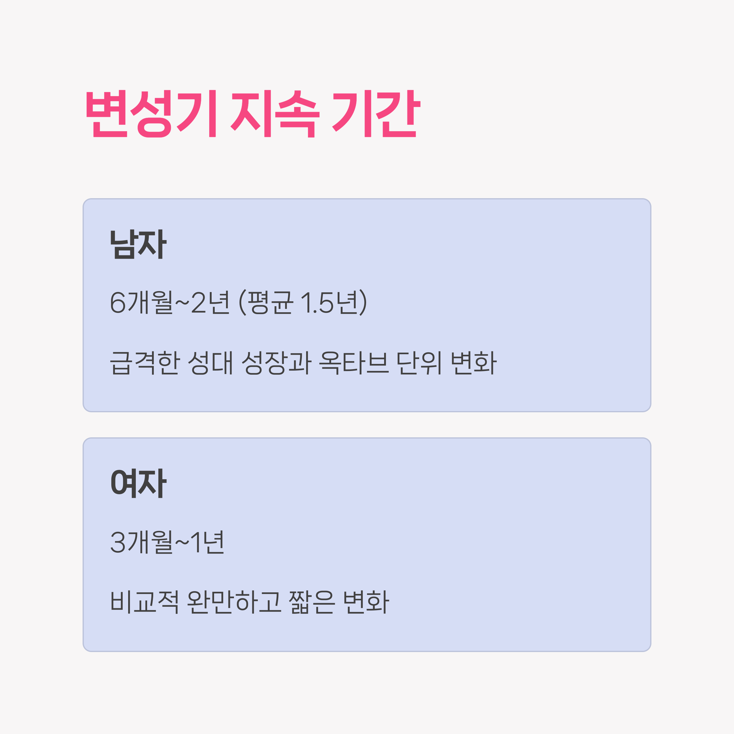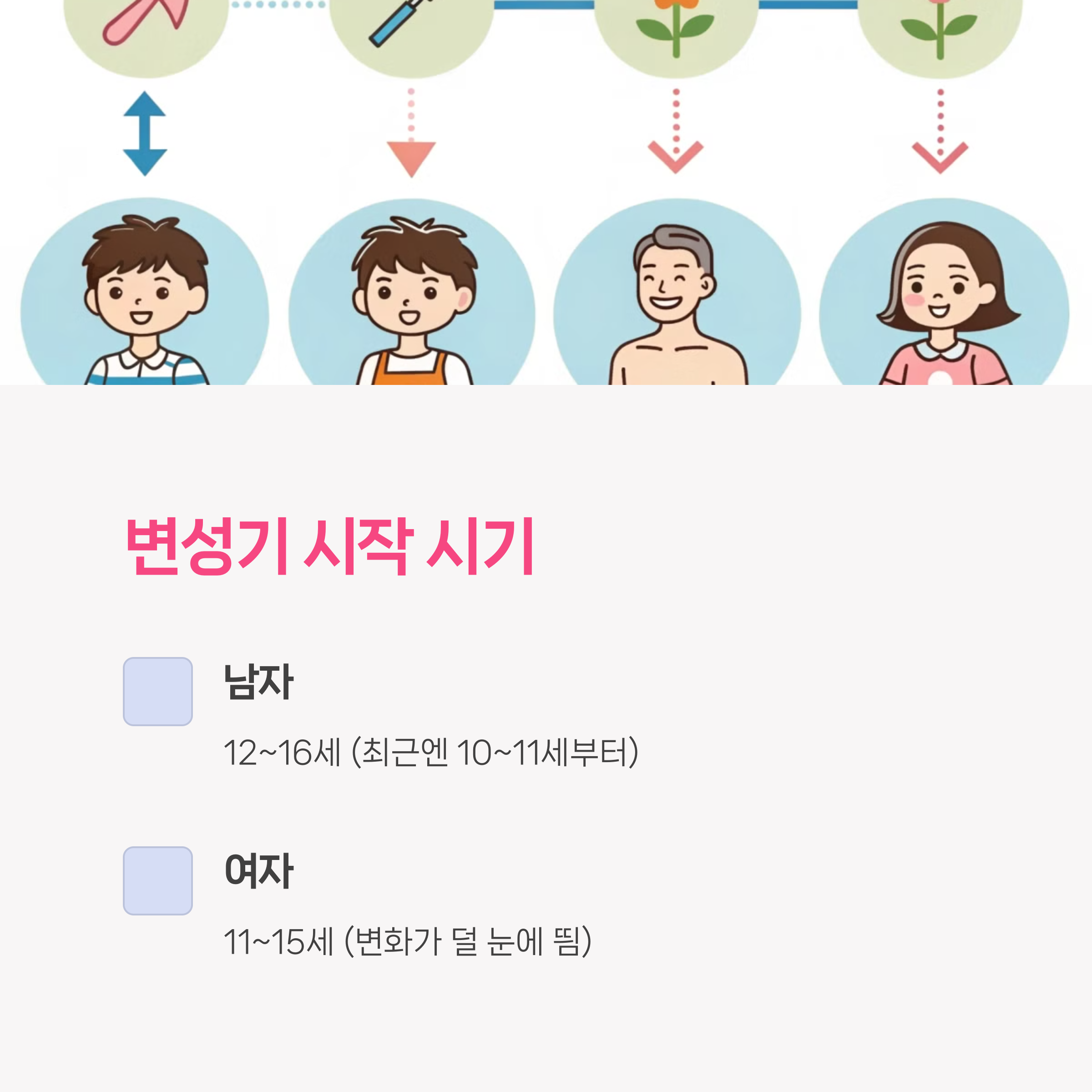 • 남자아이와 여자아이의 변성 양상은 크게 다르므로, 아이의 성별에 따라 맞춤 대응이 필요해요.