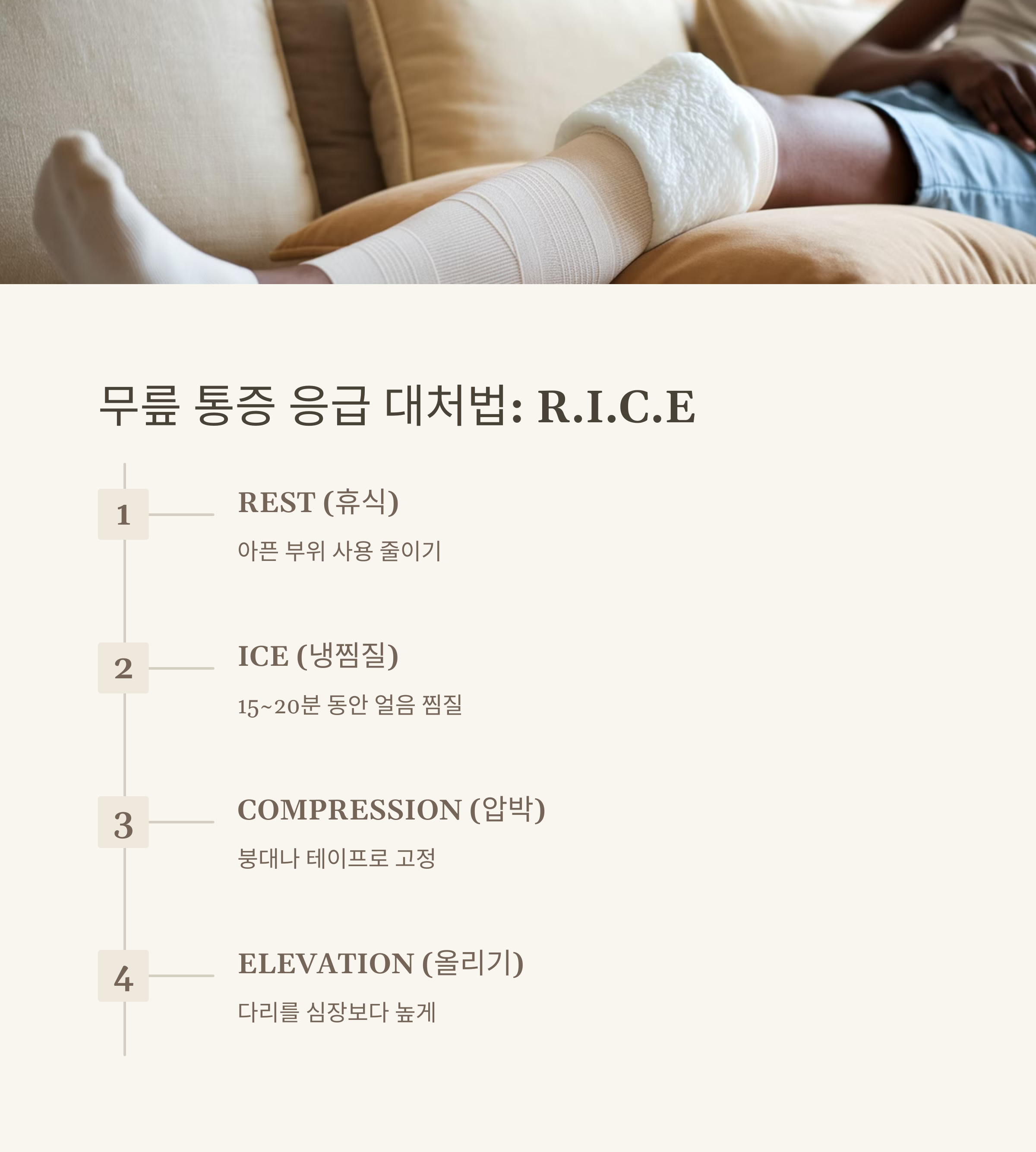 ✅ 응급 대처법 3단계 R.I.C.E. 기억하세요!
