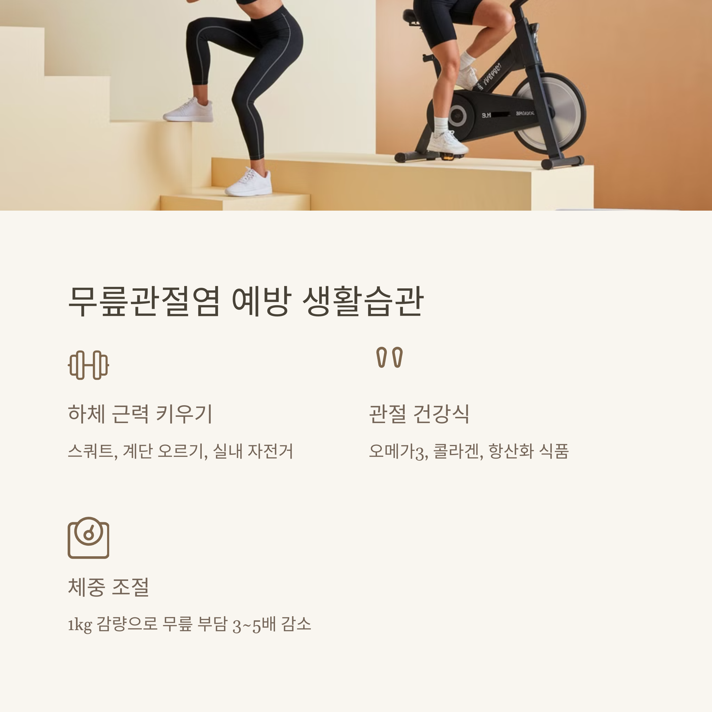 👉 무릎 주변 근육이 튼튼해야 충격을 줄여줍니다!