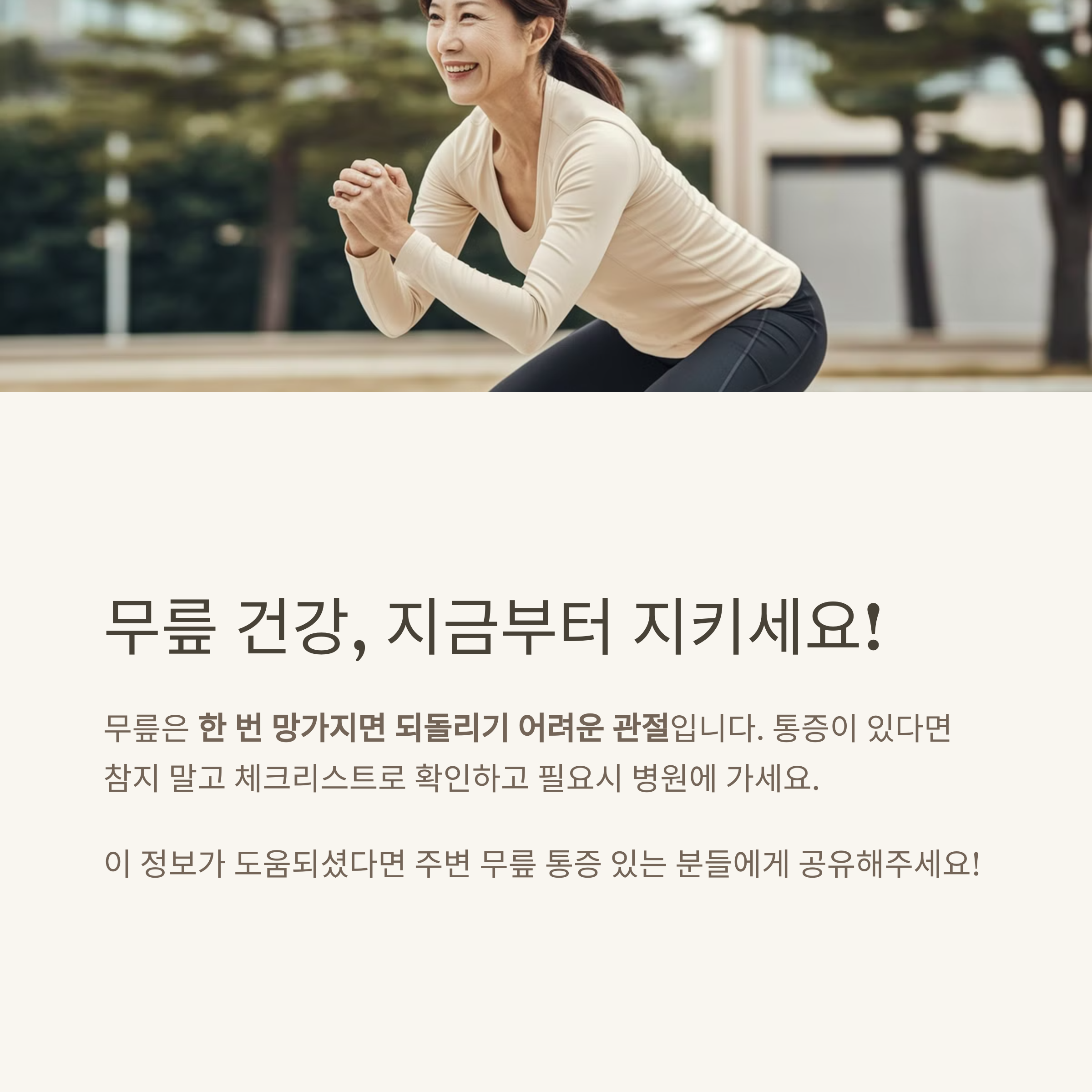 지금부터라도 내 무릎을 위해 한 가지 습관을 바꿔보는 건 어떨까요? 😊