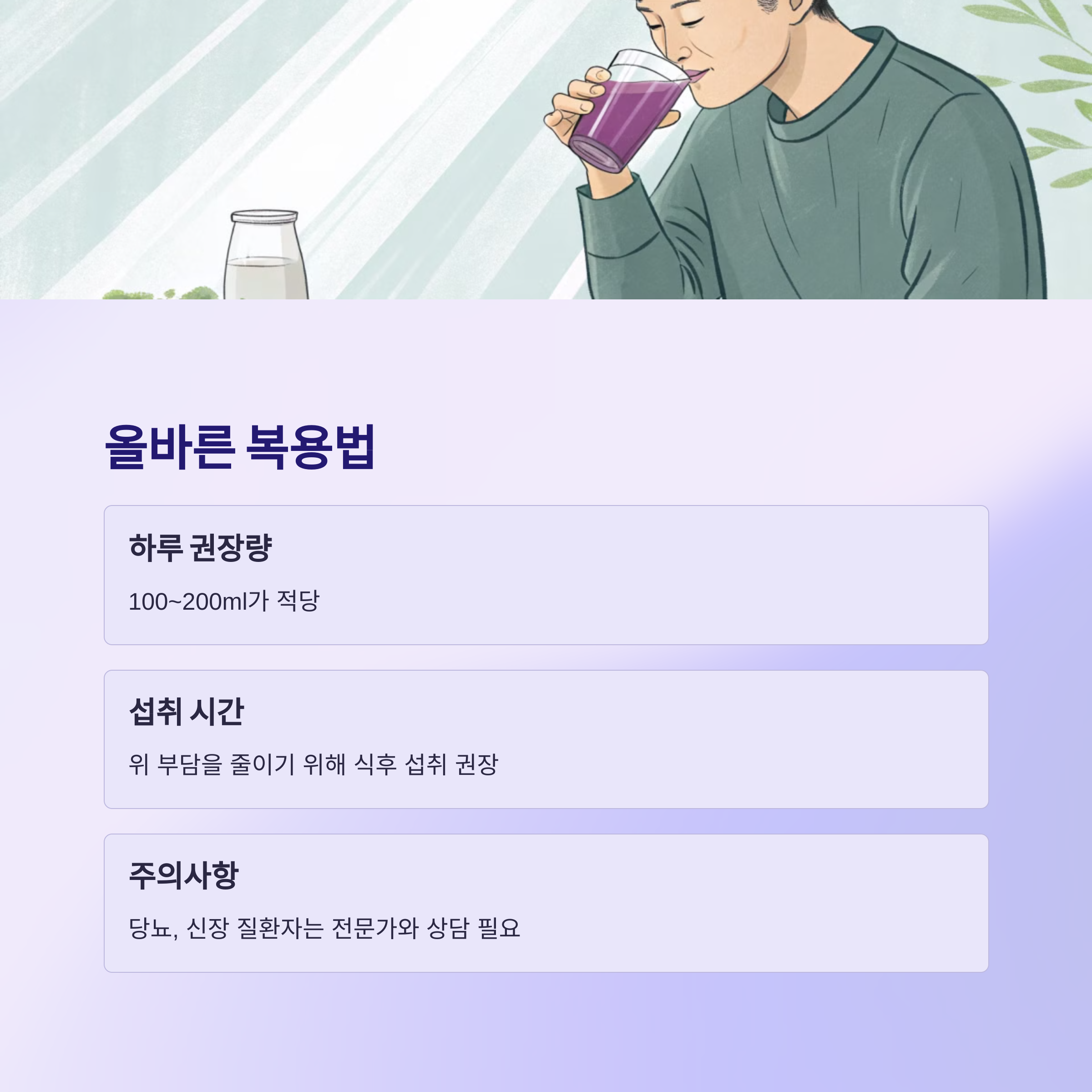 - 공복에 마시면 위에 부담이 될 수 있으므로 식후 섭취를 추천합니다.