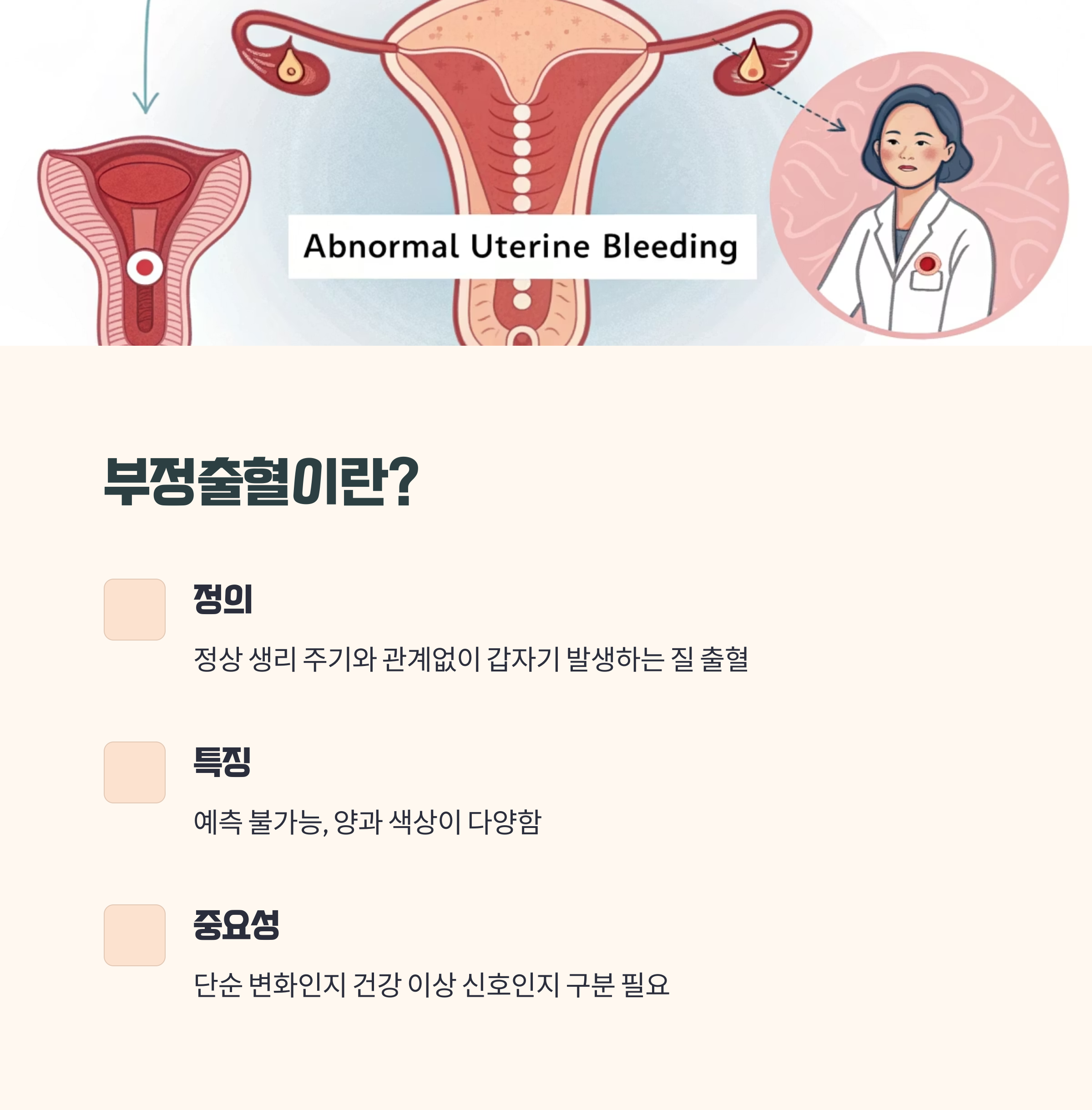 ‘부정출혈’에 대한 혼란은 정말 자주 들리는 고민이에요. 생리주기랑 안 맞는 이상한 출혈이 나타날 때, 그게 단순한 현상인지, 병원에 가야 할 상황인지 정말 애매하잖아요.