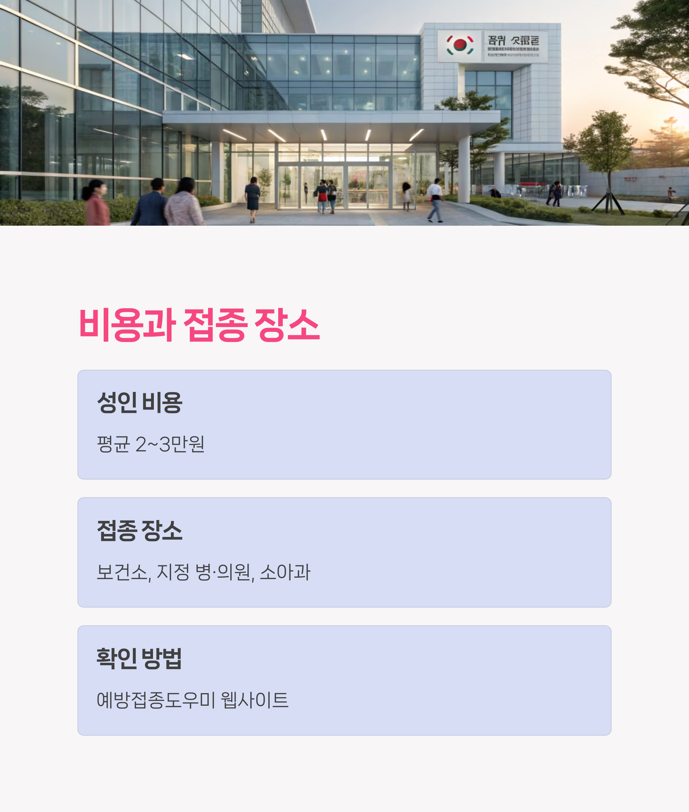| 접종 장소 | 보건소, 지정 병·의원, 소아과 등 |
