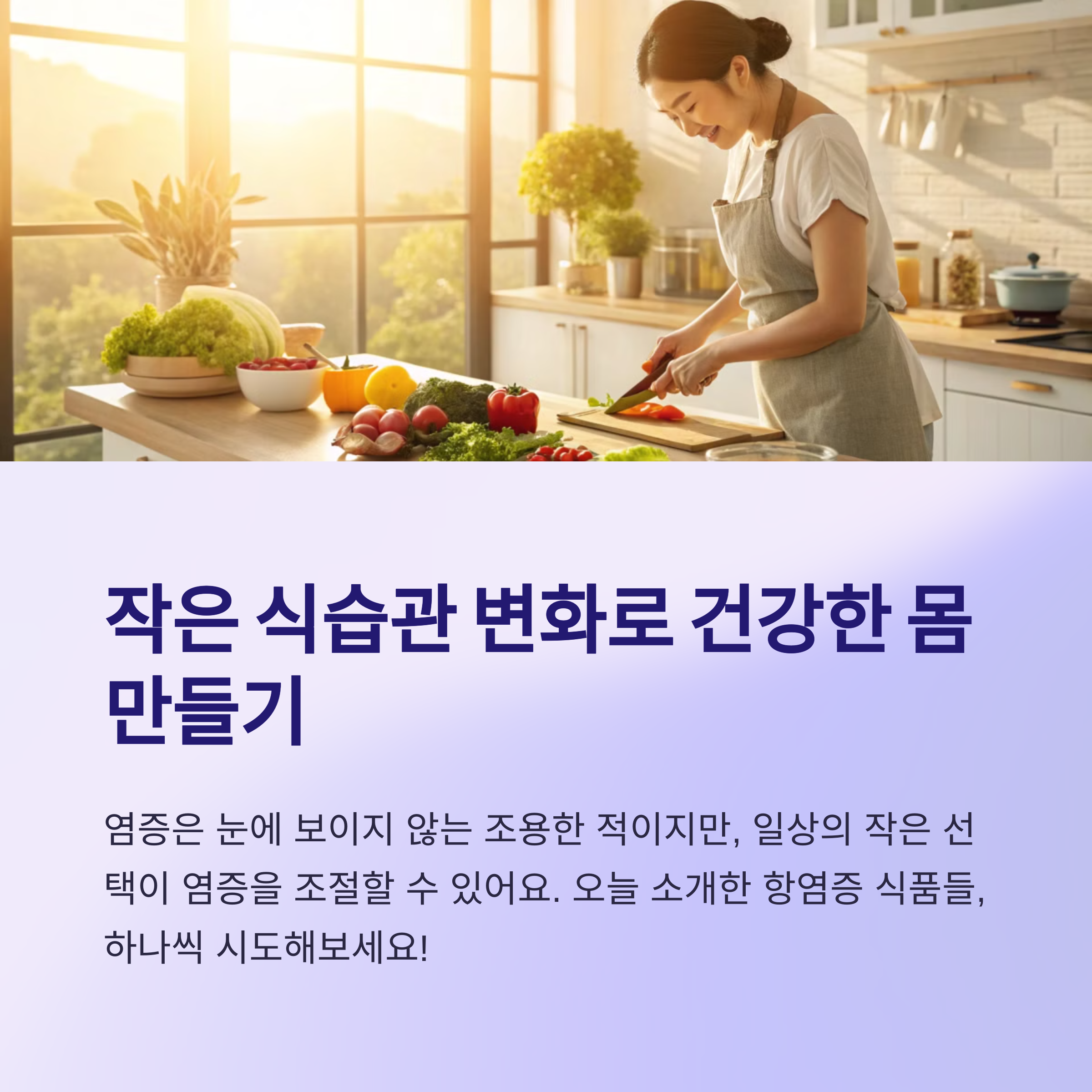 오늘 소개한 항염증 식품들, 하나씩 일상에 도입해보세요.