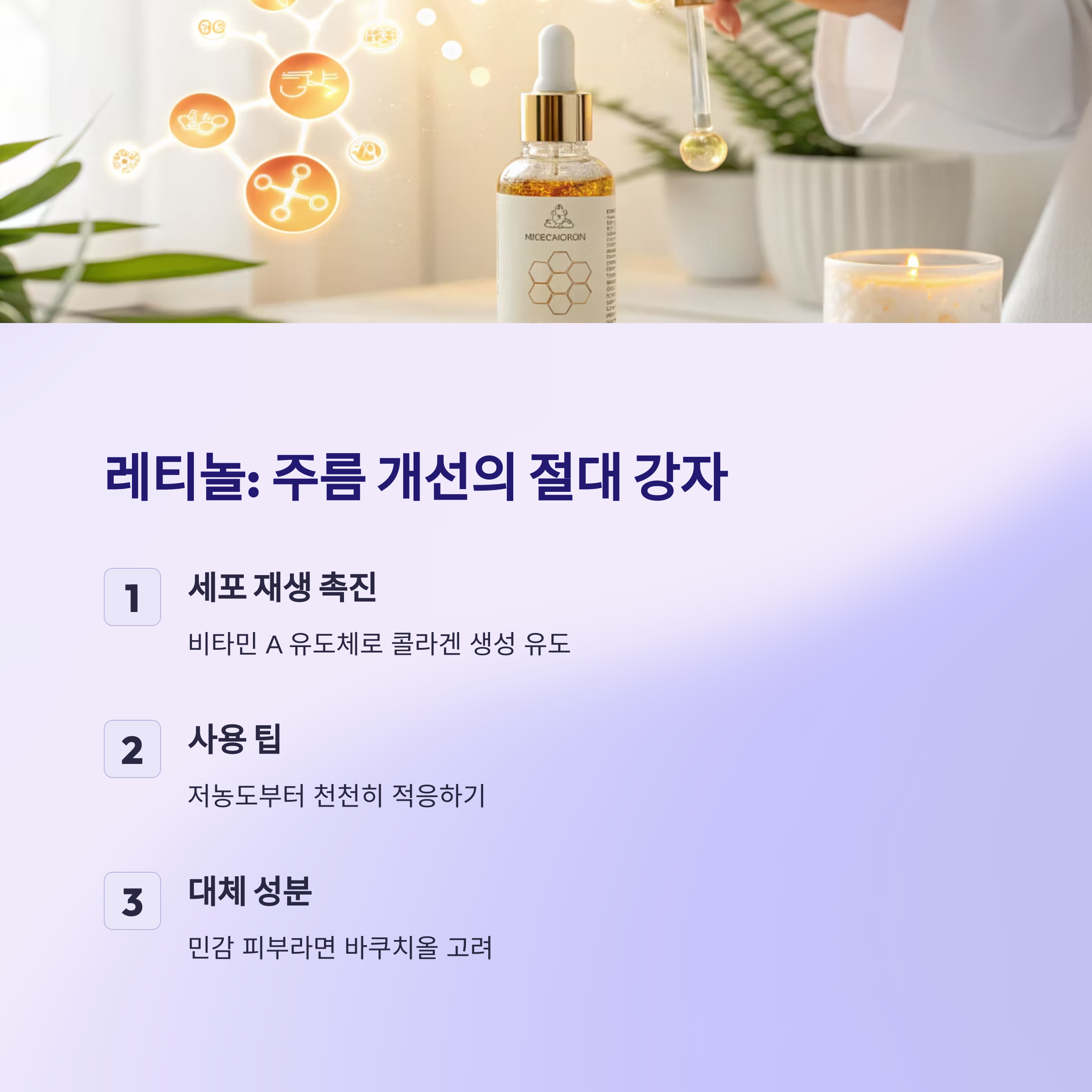 요즘은 자극이 적은 바쿠치올이라는 대체 성분도 많이 쓰이니 민감 피부라면 참고해 보세요.