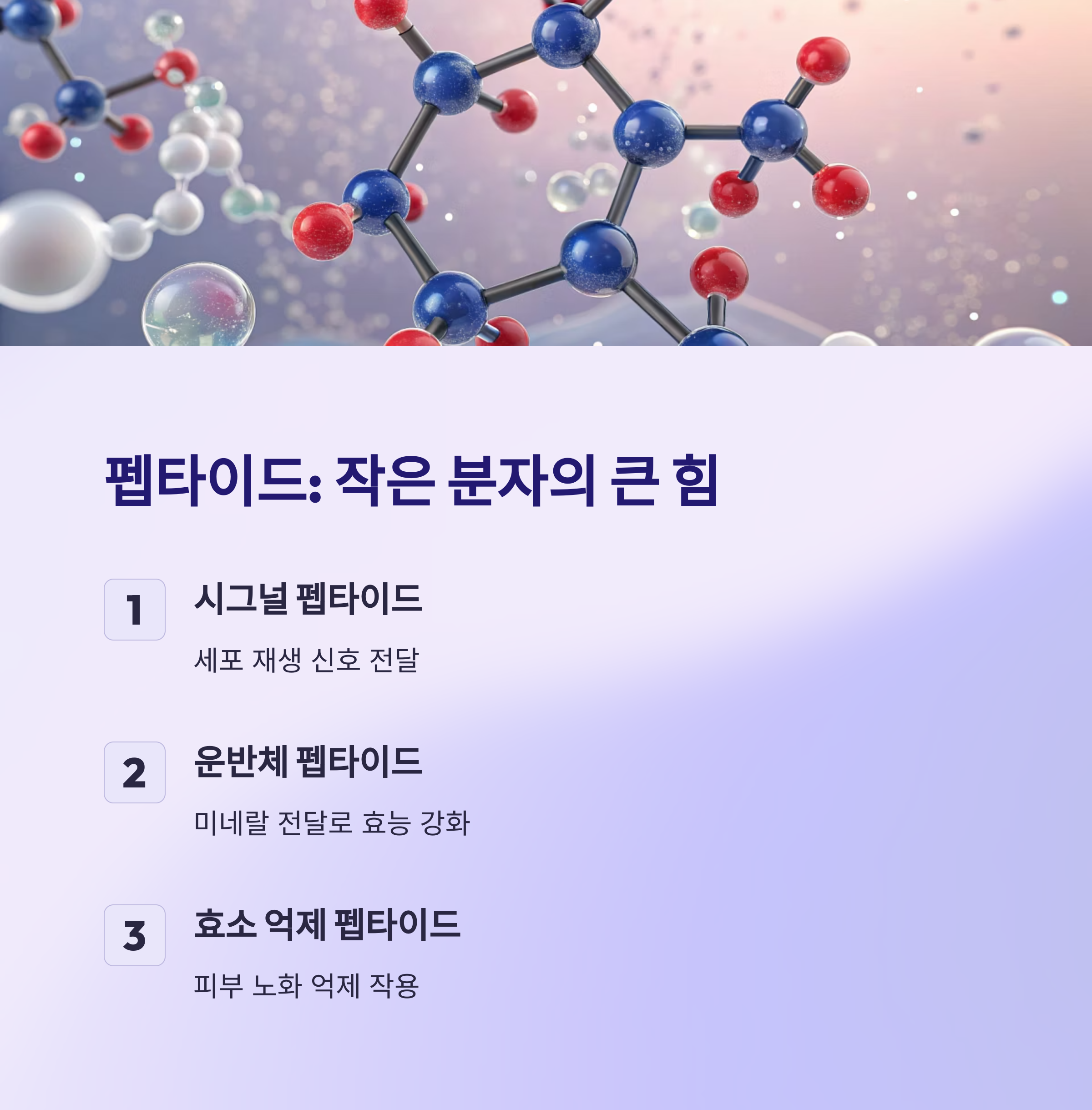 펩타이드는 아미노산이 몇 개씩 짝을 이루어 결합된 구조로, 종류에 따라 작용 방식이 달라요.