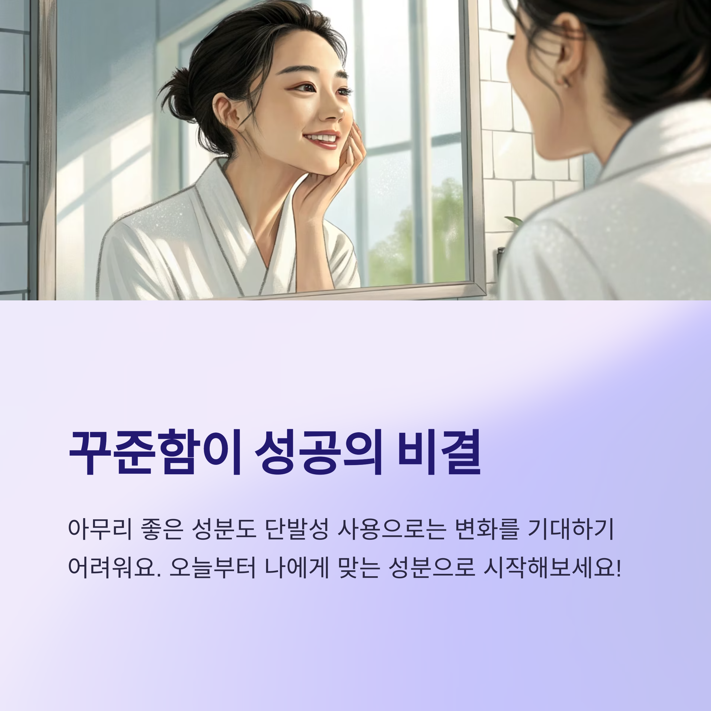 여러분, 결국 중요한 건 꾸준함이에요. 아무리 좋은 화장품이라도 하루 이틀 써서는 큰 변화를 기대하기 어렵거든요.