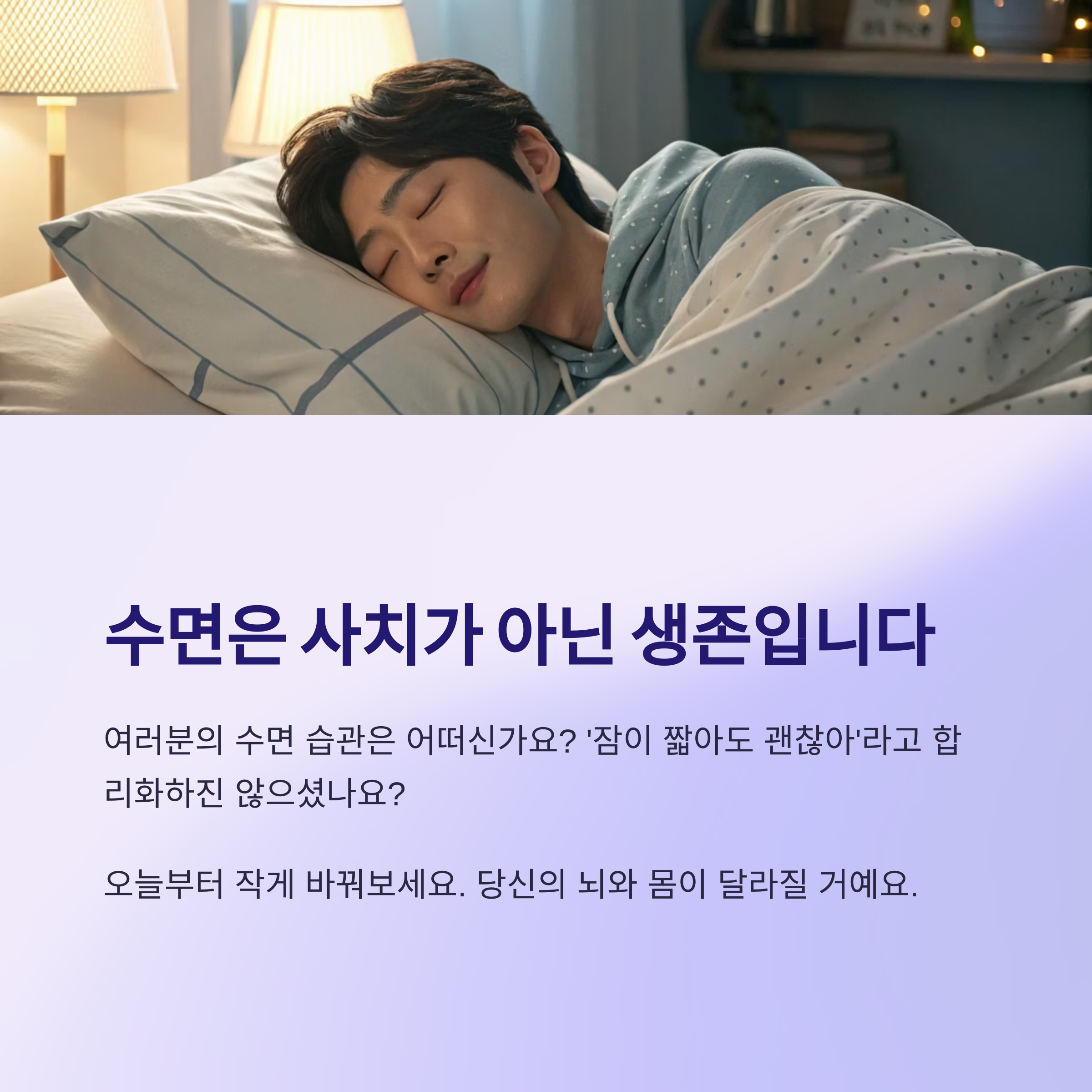 하지만 이제는 확실히 말할 수 있어요. 수면은 사치가 아니라 생존입니다.