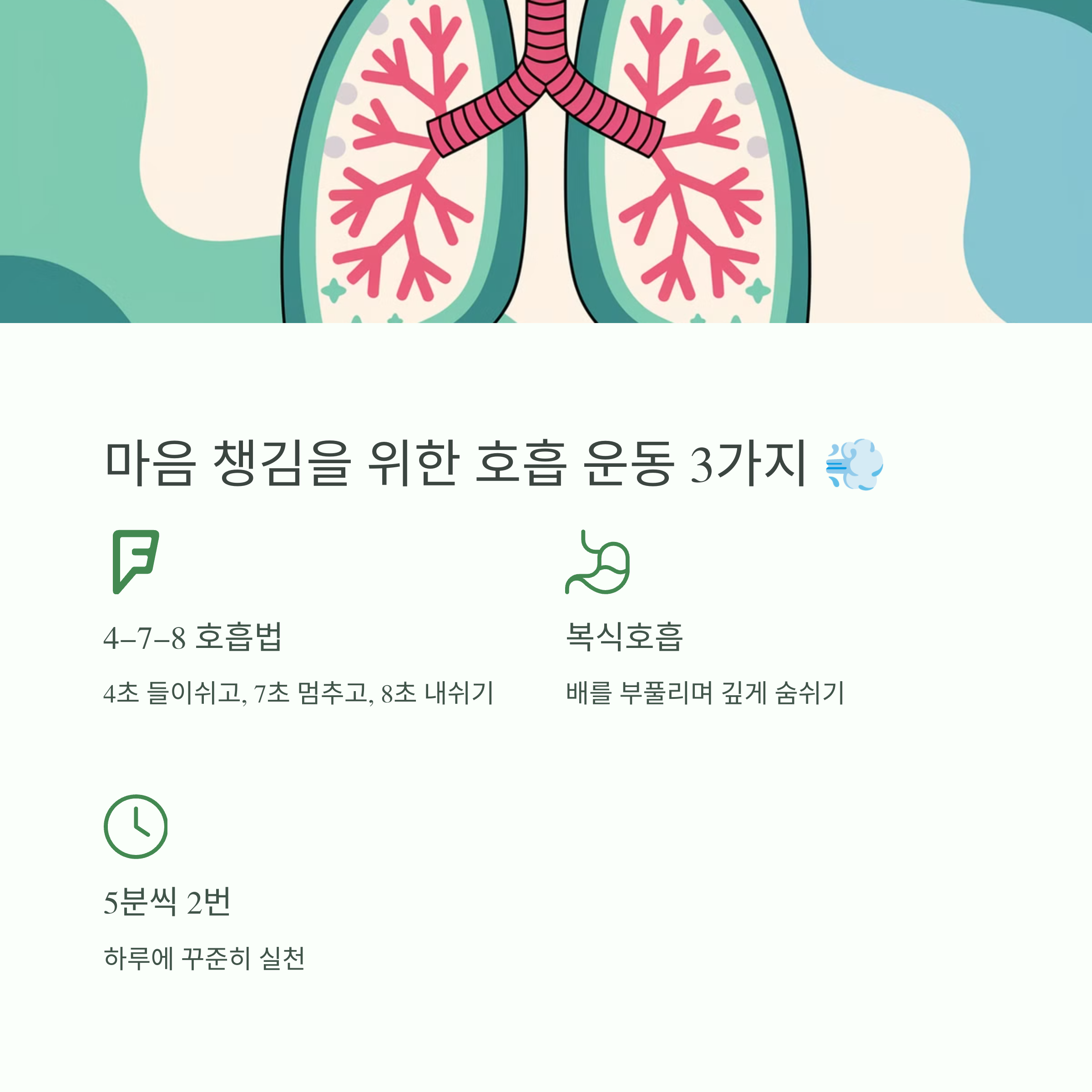 명상과 호흡 조절은 특별한 장비나 비용 없이 누구나 실천할 수 있는 강력한 힐링 방법입니다. 하루 단 10분만 투자해도, 몸과 마음의 변화는 생각보다 훨씬 빠르게 나타납니다. 오늘부터 작은 습관을 만들어 더 건강하고 평온한 삶을 시작해 보세요!