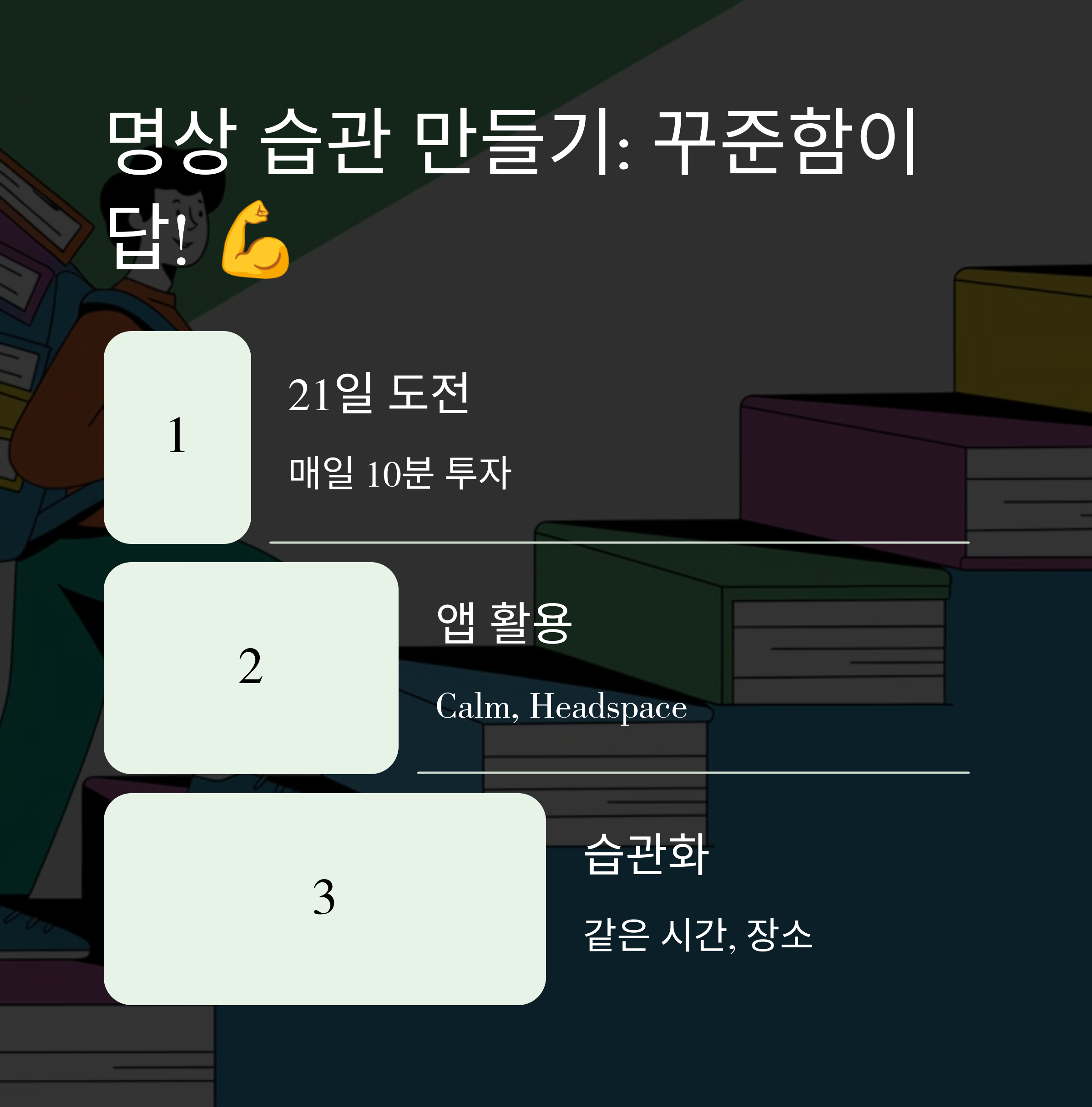 명상을 실천해 본 경험이 있나요? 여러분만의 스트레스 해소법을 댓글로 공유해 주세요!