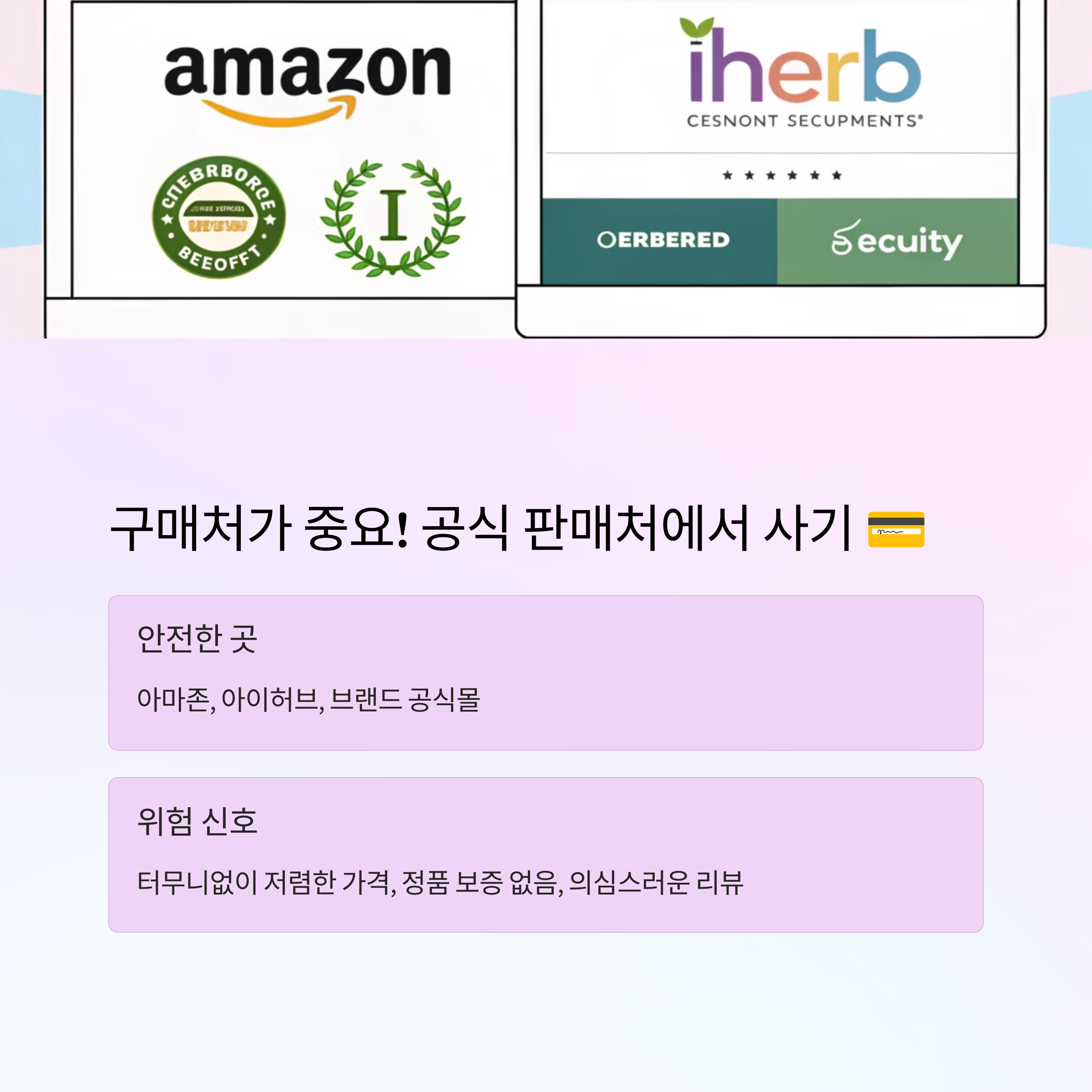 아마존, 아이허브, 브랜드 공식몰 같은 믿을 만한 사이트에서 구매하는 게 가장 안전해요.