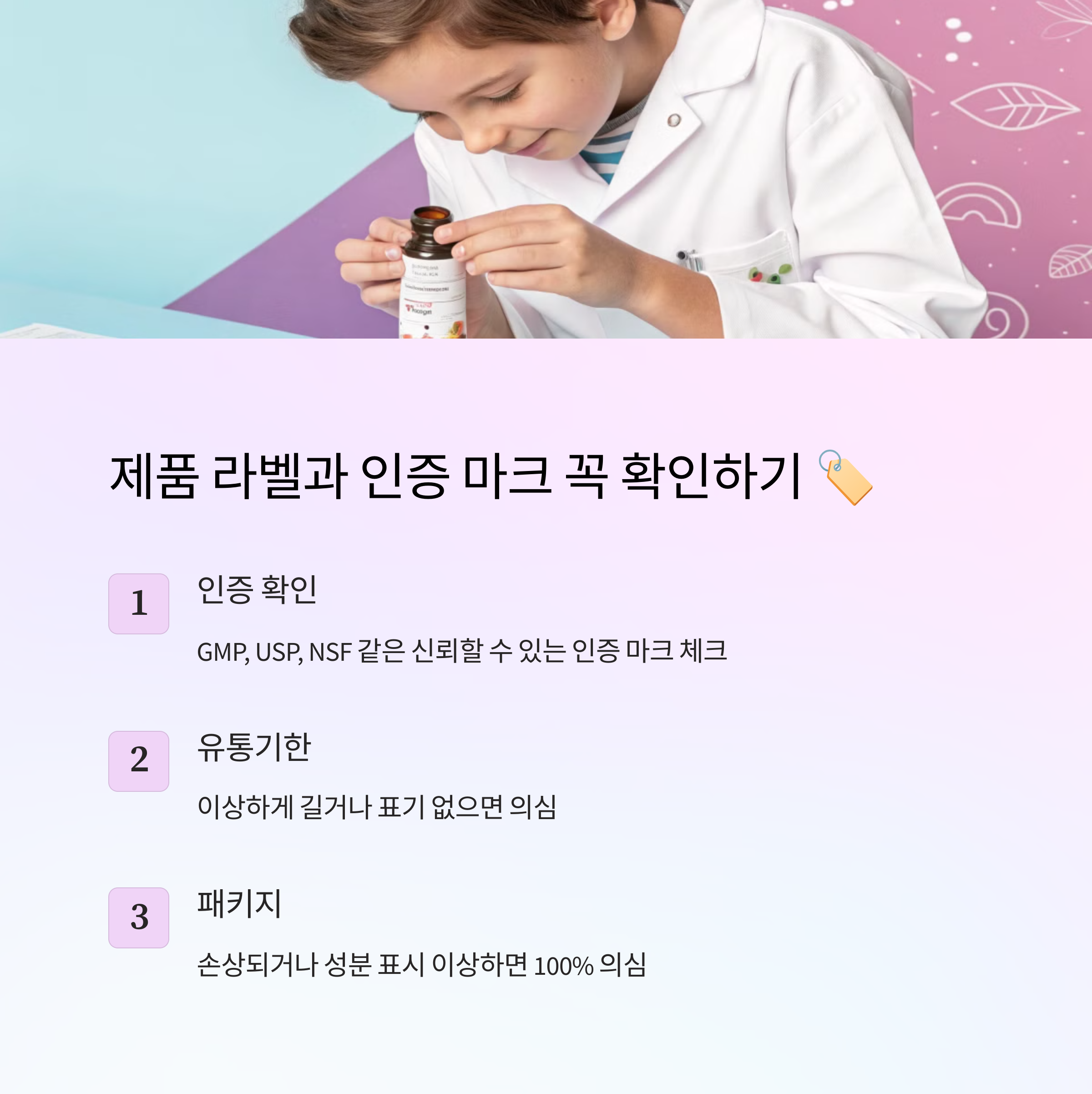 ✔ 인증 마크(GMP, USP, NSF) 확인