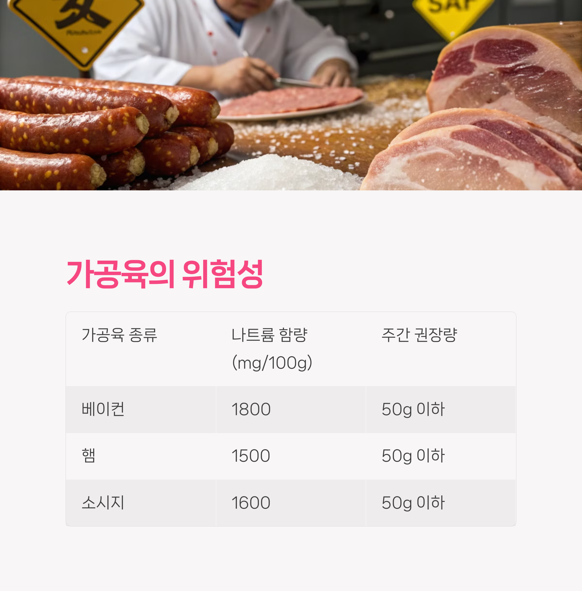 너무 맛있지만, 건강에는 글쎄요… 가공육에는 나트륨이 어마어마하게 들어 있어요.