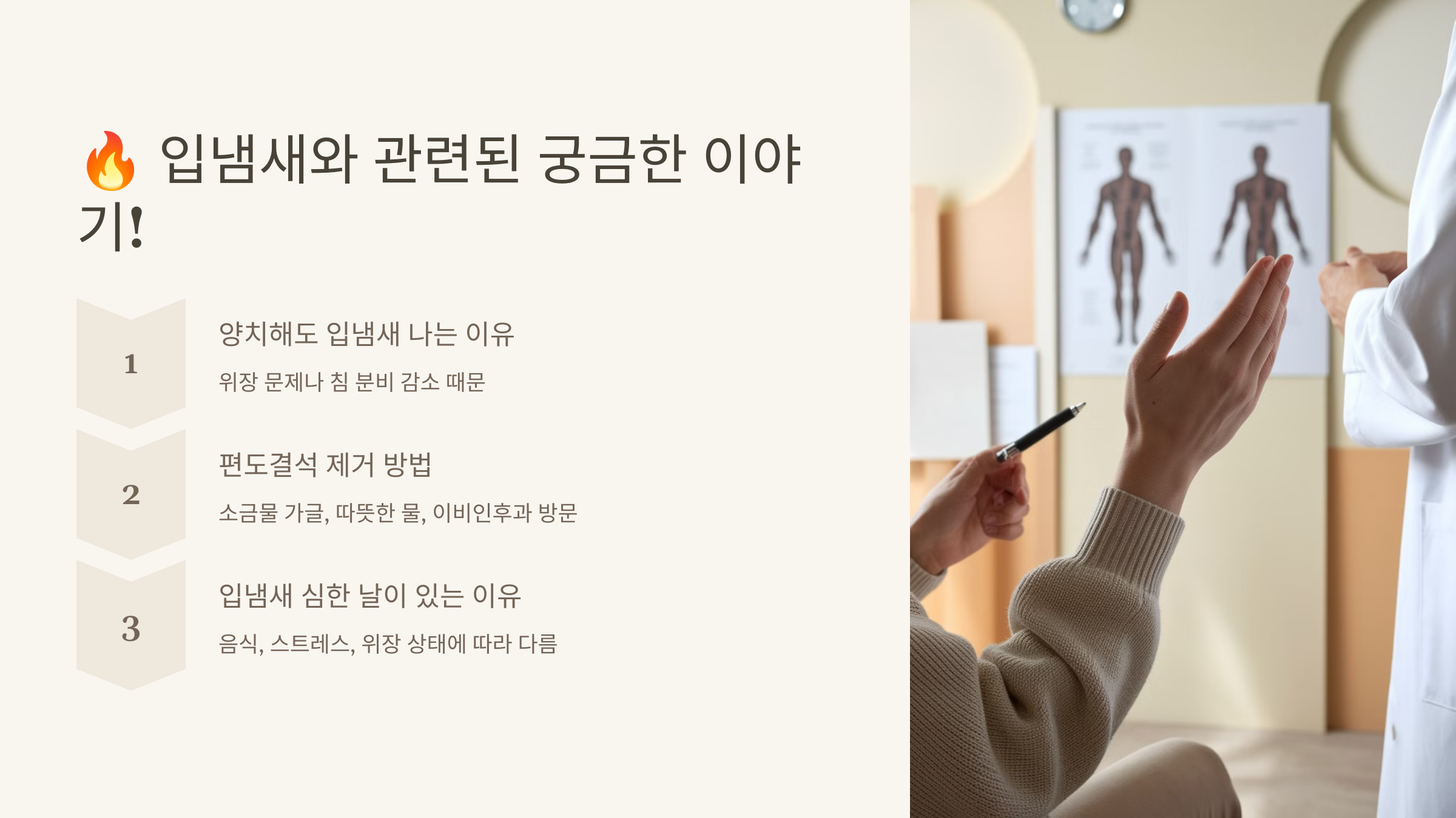 👉 단순히 양치 부족이 아니라, 위장 문제나 침 분비 감소 때문일 수 있어요! 😵