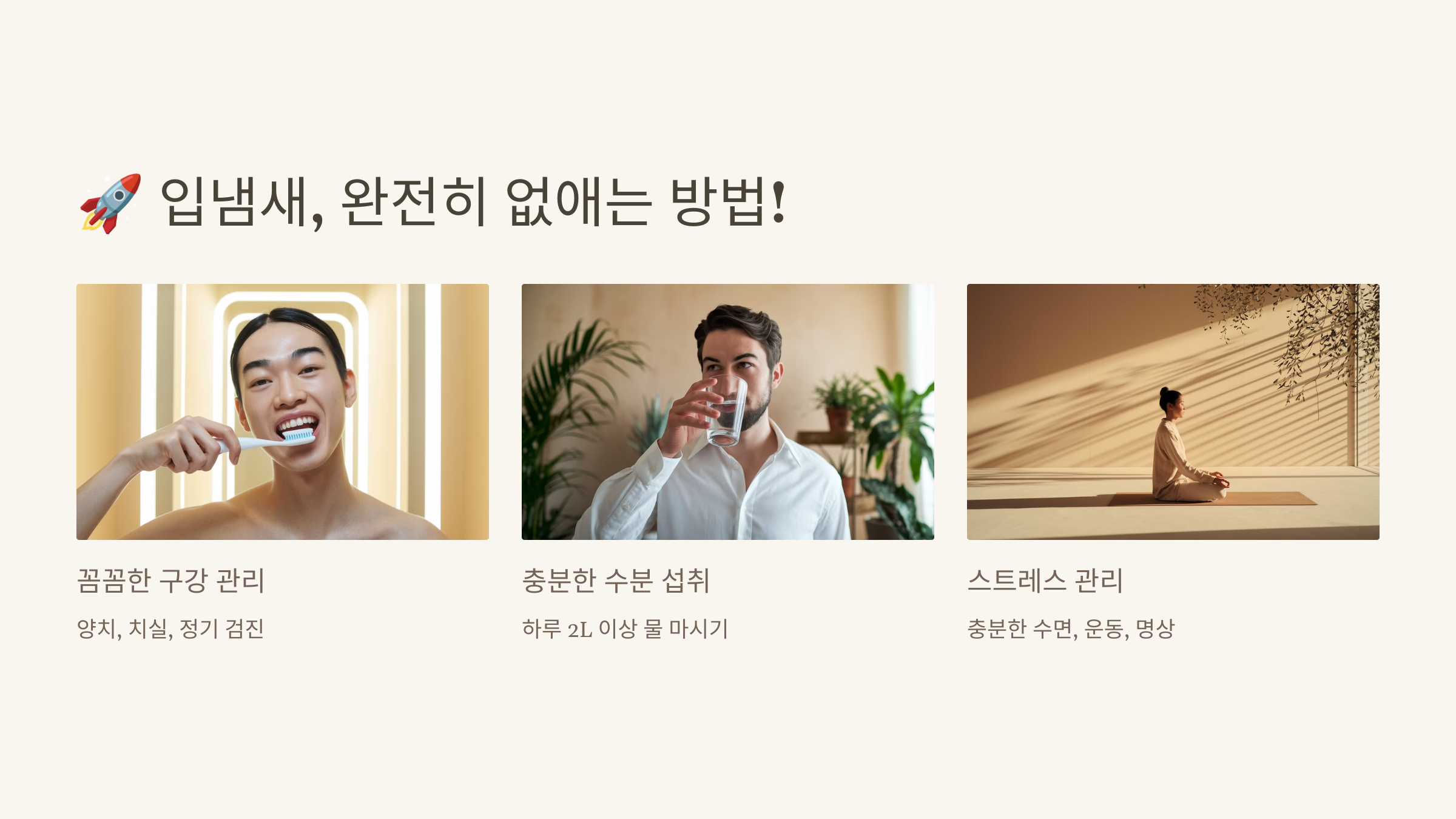 그러니 단순히 양치만 할 게 아니라, 원인을 제대로 찾아서 해결하는 게 중요합니다.