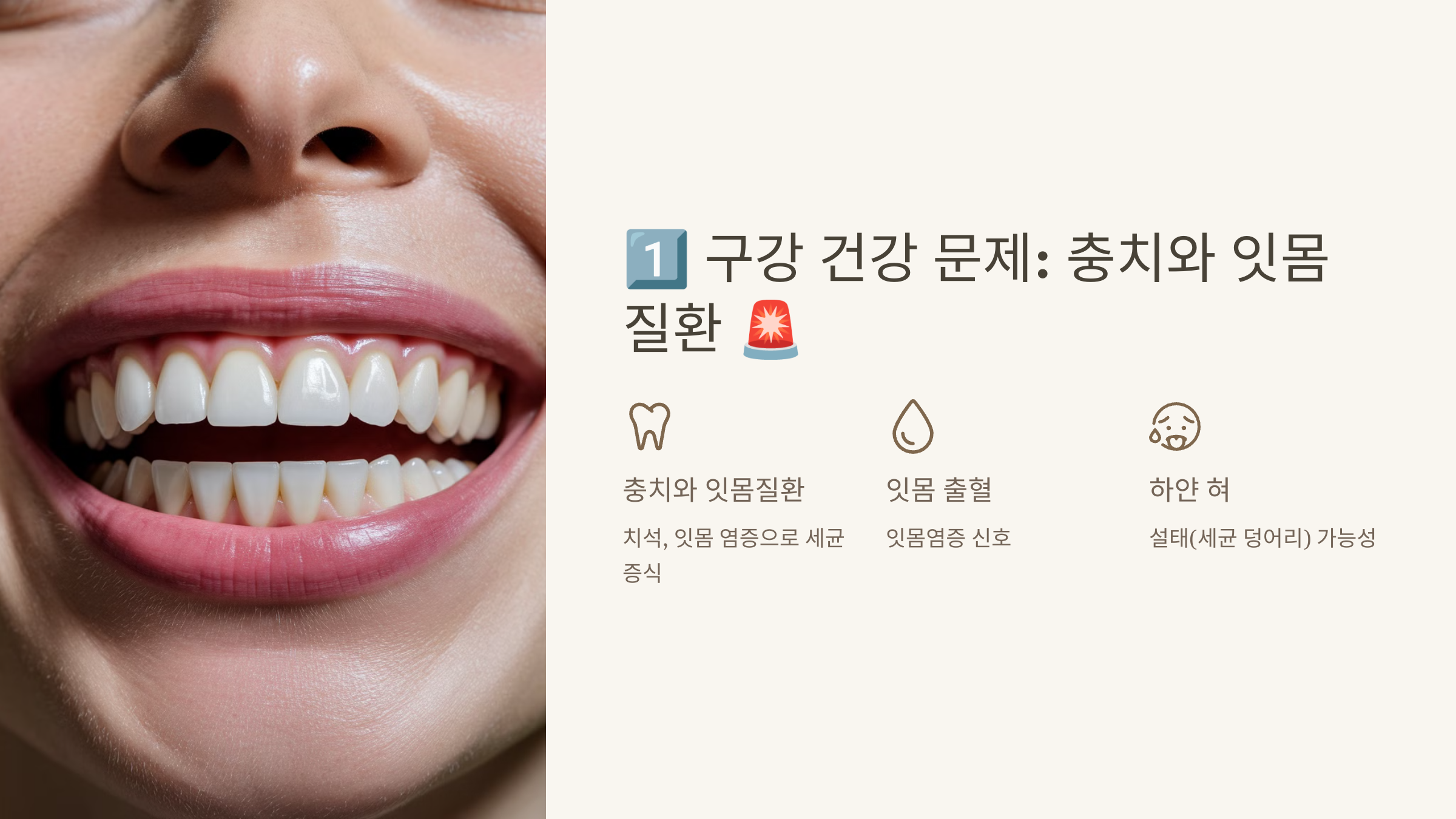 1️⃣ 구강 건강 문제: 충치와 잇몸질환 🚨